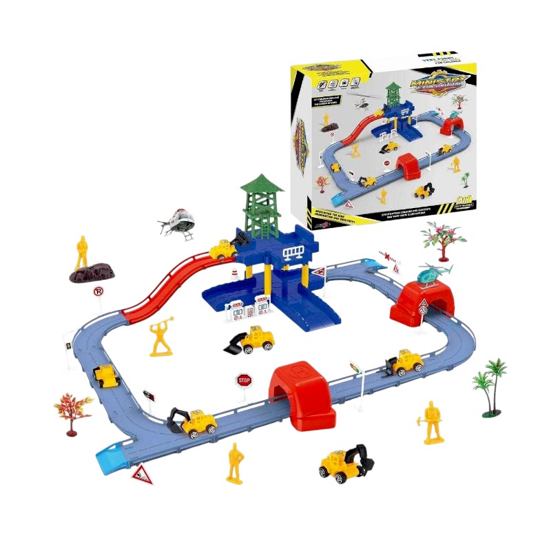 Αυτοκινητόδρομος πίστα – Parking με αξεσουάρ, σε εντυπωσιακό σχεδιασμό με πολλαπλές δυνατότητες. Στήσε πανεύκολα τη πίστα σου και ετοιμάσου για ατελείωτους αγώνες ταχύτητας και τρελά κόλπα!