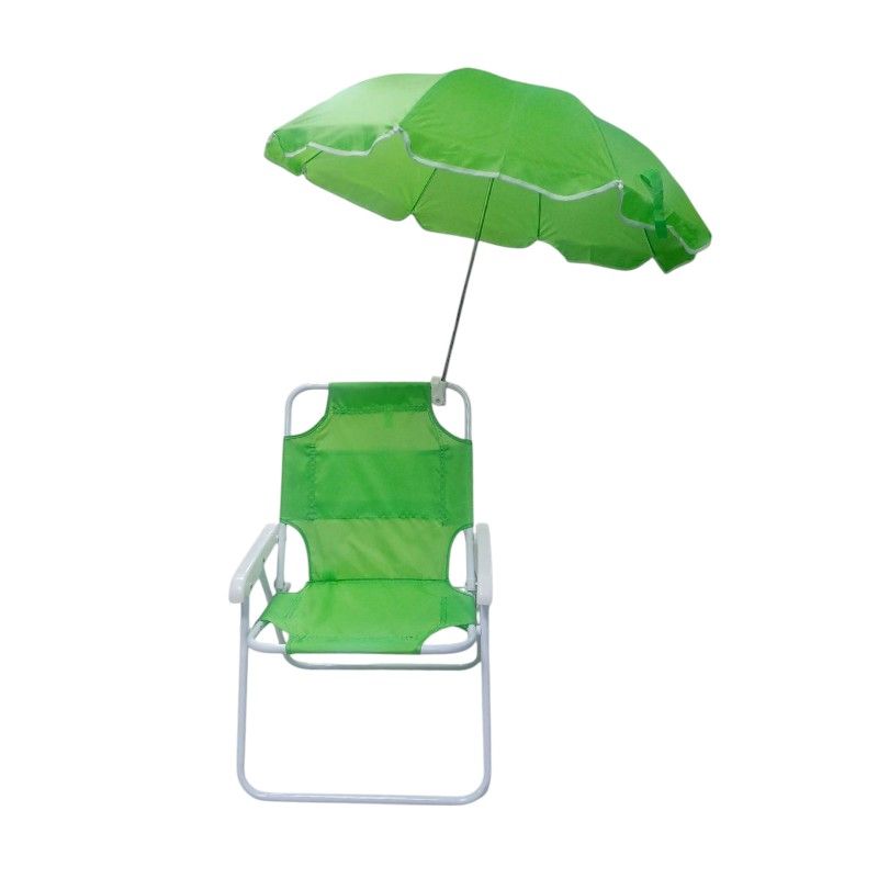 Παιδική πτυσσόμενη καρέκλα camping, με μπράτσα και ανθεκτικό, αδιάβροχο ύφασμα που καθαρίζεται εύκολα. Διαθέτει ενσωματωμένη ομπρέλα σκίασης. Στιβαρός σιδερένιος σκελετός που διπλώνει με μία κίνηση, για εύκολη μεταφορά και αποθήκευση. Διαθέτει αντιολισθητικά πατάκια. Ιδανική για το camping, το ψάρεμα, την παραλία, τον κήπο κα.