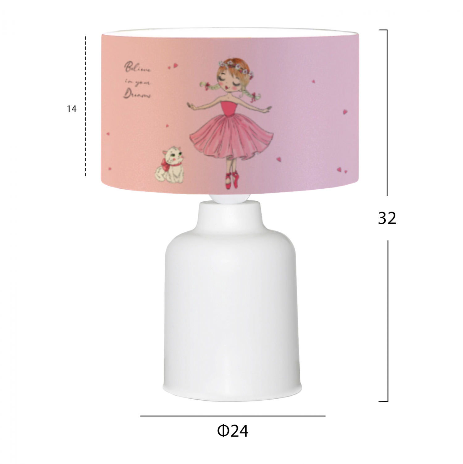 Παιδικό επιτραπέζιο φωτιστικό, υφασμάτινο, σε ροζ απόχρωση, με σχέδιο Ballerina.