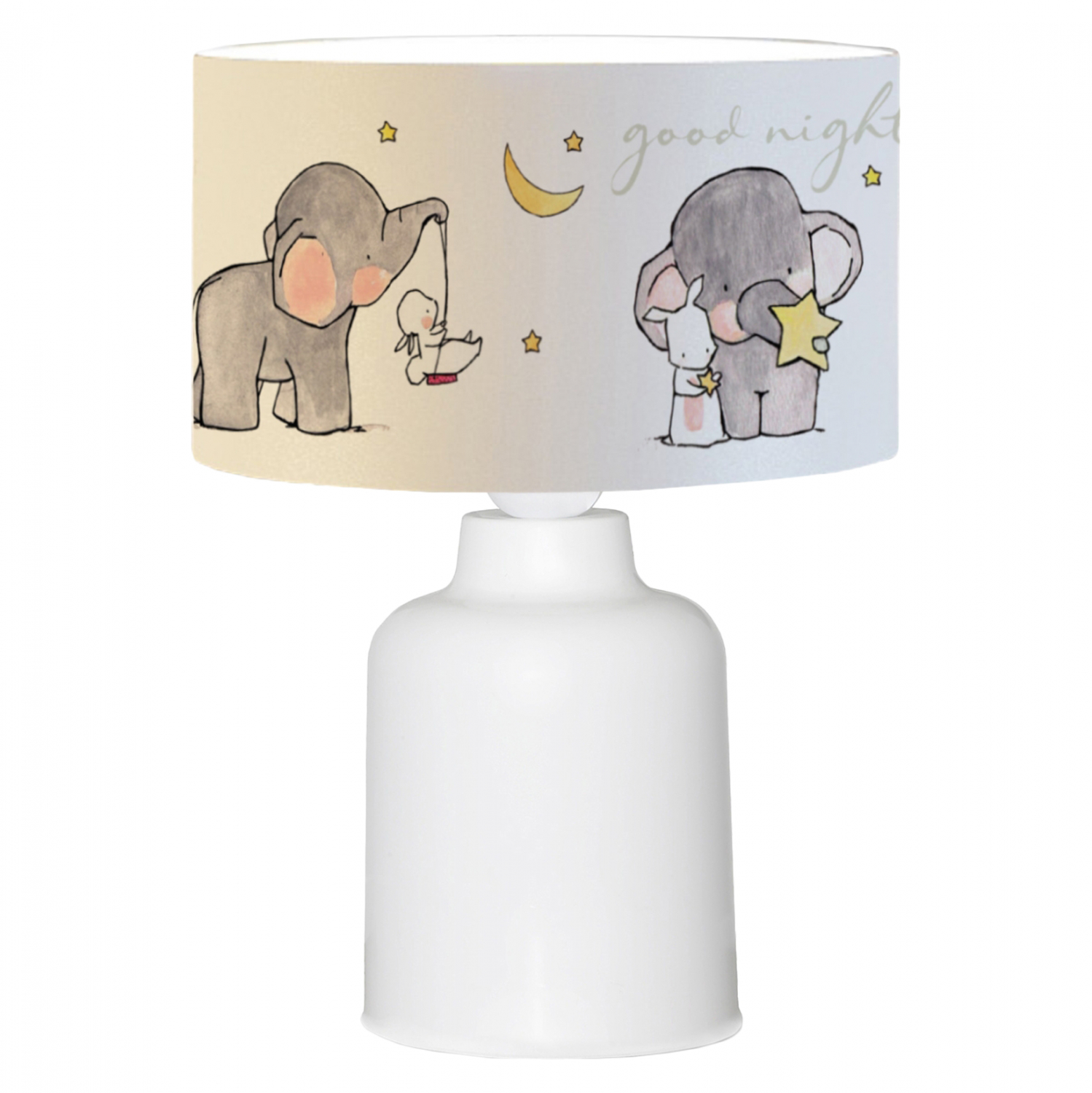 Παιδικό επιτραπέζιο φωτιστικό,υφασμάτινο, σε λευκή απόχρωση,με σχέδιο Elephant.