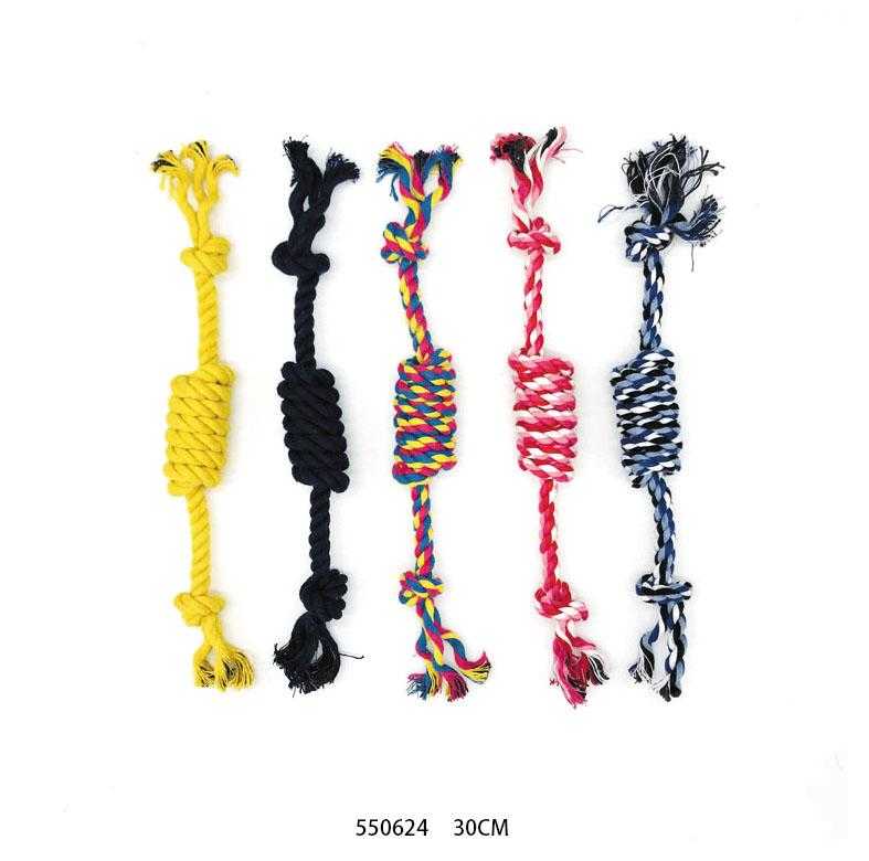 Παιχνίδι σκύλου σχοινί με κόμπους, από ανθεκτικό, μη τοξικό υλικό, ιδανικό για παιχνίδια τραβήγματος/αντίστασης ενώ παράλληλα βοηθά στην υγιεινή στόματος του σκύλου σας καθώς καθαρίζει ήπια και απασχολεί τα δόντια του.