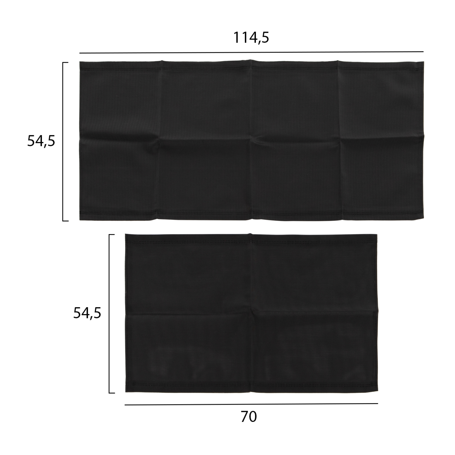 Το πανί αυτό είναι ανταλλακτικό πανί για ξαπλώστρες, και είναι σε ΜΑΥΡΟ χρώμα. Αποτελείται από δύο κομμάτια. Το υλικό του είναι TEXTILENE 2×1 και 550gr/m2.