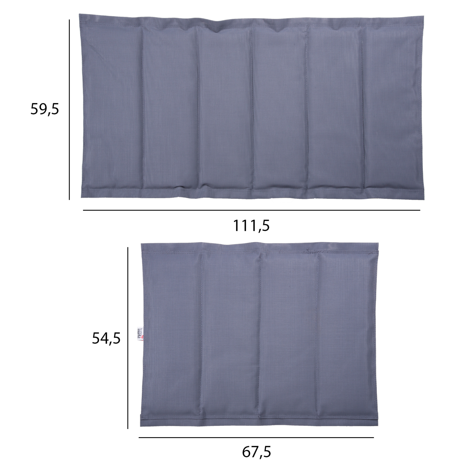 Το πανί αυτό είναι ανταλλακτικό πανί για ξαπλώστρες, και είναι σε ΓΚΡΙ χρώμα. Αποτελείται από δύο κομμάτια. Το υλικό του είναι TEXTILENE 2×1 και 550gr/m2, με γέμισμα αφρώδους υλικού πάχους 3 εκ.