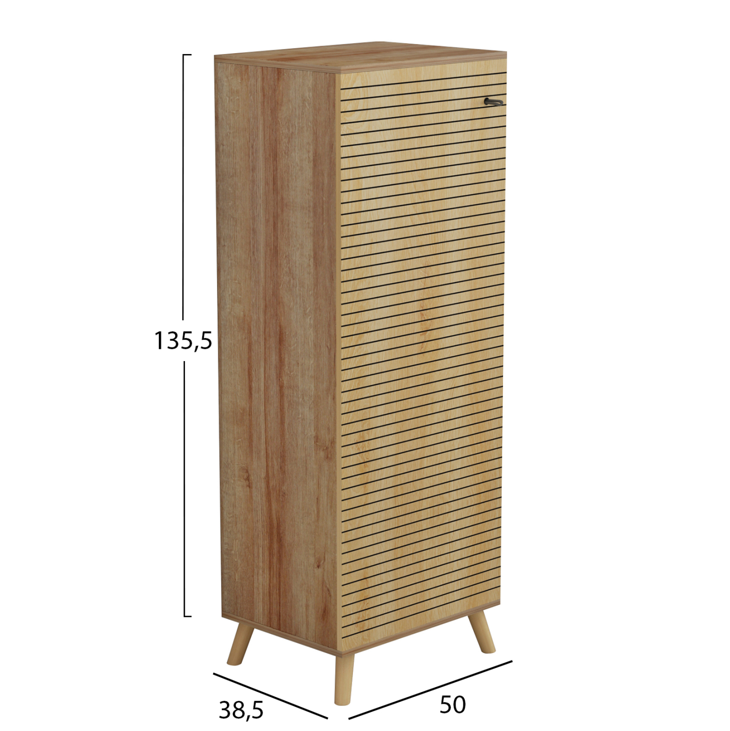 Σας παρουσιάζουμε την παπουτσοθήκη-ντουλάπι μελαμίνης FB98954.16 σε ΦΥΣΙΚΟ χρώμα ξύλου. Πρόκειται για ένα ψηλό σχετικά ντουλάπι με 1 πόρτα σε χρώμα, επίσης, ΦΥΣΙΚΟΥ ξύλου με ανθρακί ρίγες. Τα πόδια είναι ξύλινα και ψηλά ενώ στο εσωτερικό έχει 7 ράφια (άρα, 8 επίπεδα τοποθέτησης). Σκοπός μας είναι να σας βοηθήσουμε να οργανώσετε και να βελτιώσετε με τον καλύτερο δυνατό τρόπο οτιδήποτε θελήσετε.
