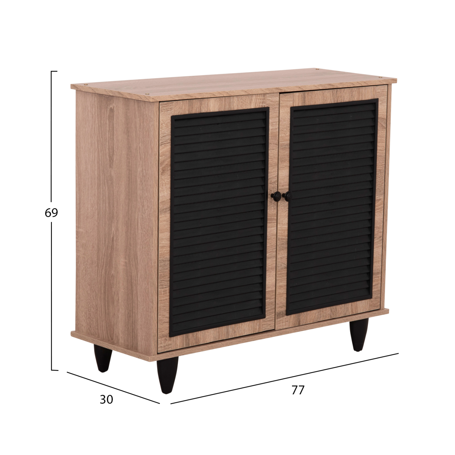 Η παπουτσοθήκη διαθέτει 2 ράφια, 3 επίπεδα αποθήκευσης και γρίλιες στις πόρτες για να αερίζονται τα παπούτσια σας.