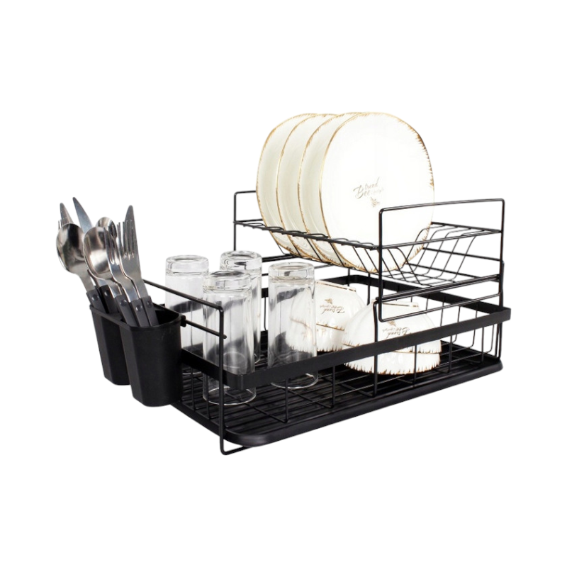 Πιατοθήκη αποστράγγισης διώροφη inox, σε πρακτικό σχεδιασμό, με θήκη μαχαιροπίρουνων.