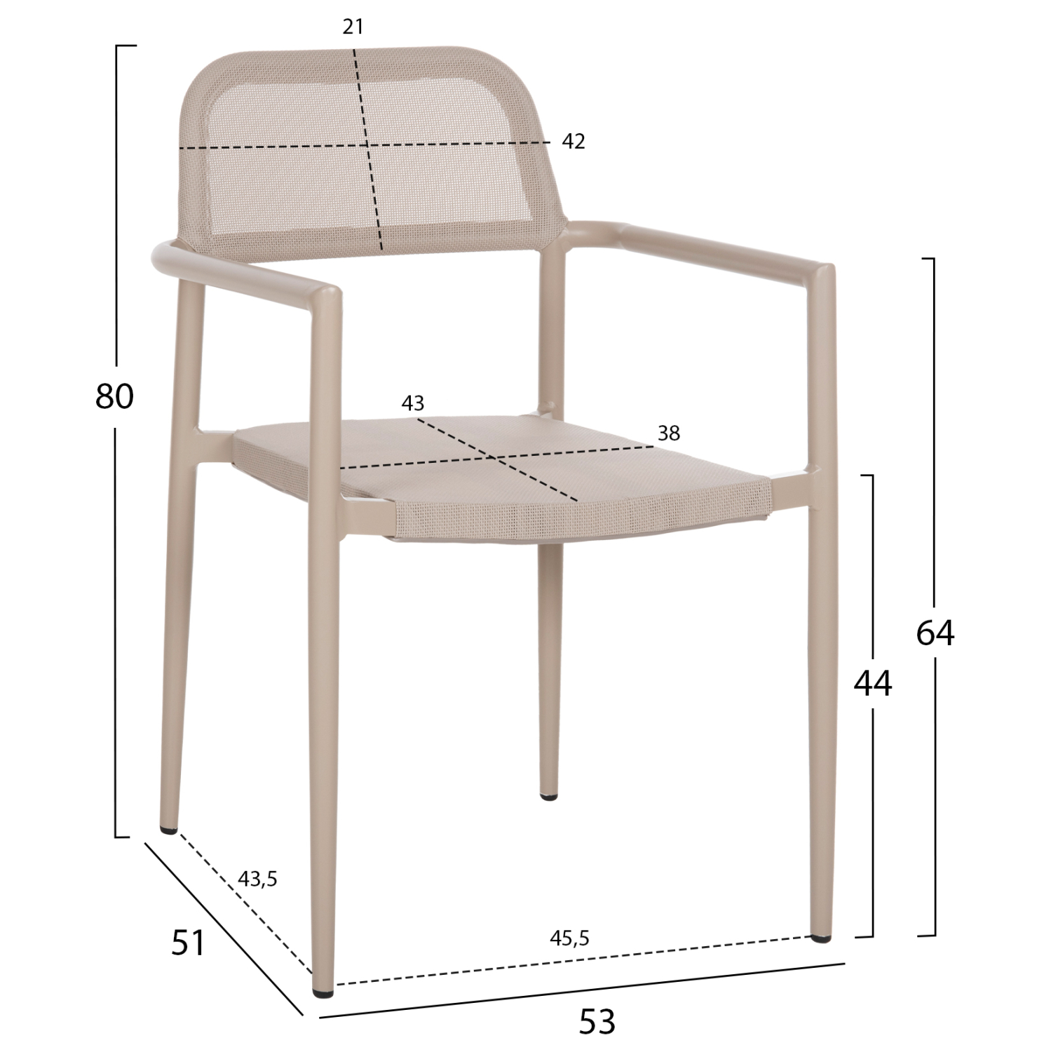 Το κάθισμα και η πλάτη είναι από textline (ή textilene) υψηλής ποιότητας 2×1. Αυτό είναι ένα παχύ, ισχυρό και ανθεκτικό πολυεστερικό ύφασμα. Σημαίνει ότι είναι κατασκευασμένο από πολυεστερικά νήματα με PVC.