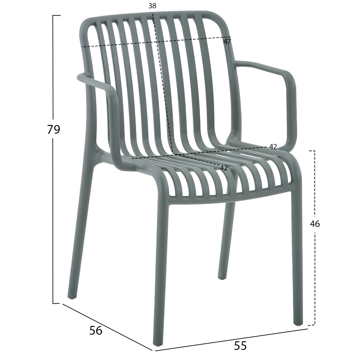 Η πολυθρόνα FB96105.07 είναι μια κλασσική πολυθρόνα εξωτερικού χώρου που θα καλύψει κάθε σας ανάγκη στην αυλή ή το μπαλκόνι σας. Είναι ποιοτική και κομψή στην όψη, ενώ το καμπυλωτό κάθισμα στο μπροστά μέρος όπως και τα σχετικά ψηλά της μπράτσα την καθιστούν αναπαυτικότατη. Όλη η πολυθρόνα είναι από δοκούς πολυπροπυλενίου σε DARK OLIVE χρώμα. Είναι στοιβαζόμενη, ελαφριά και άνετη, ιδανική επιλογή και για επαγγελματική χρήση, όπως σε catering κτλ.