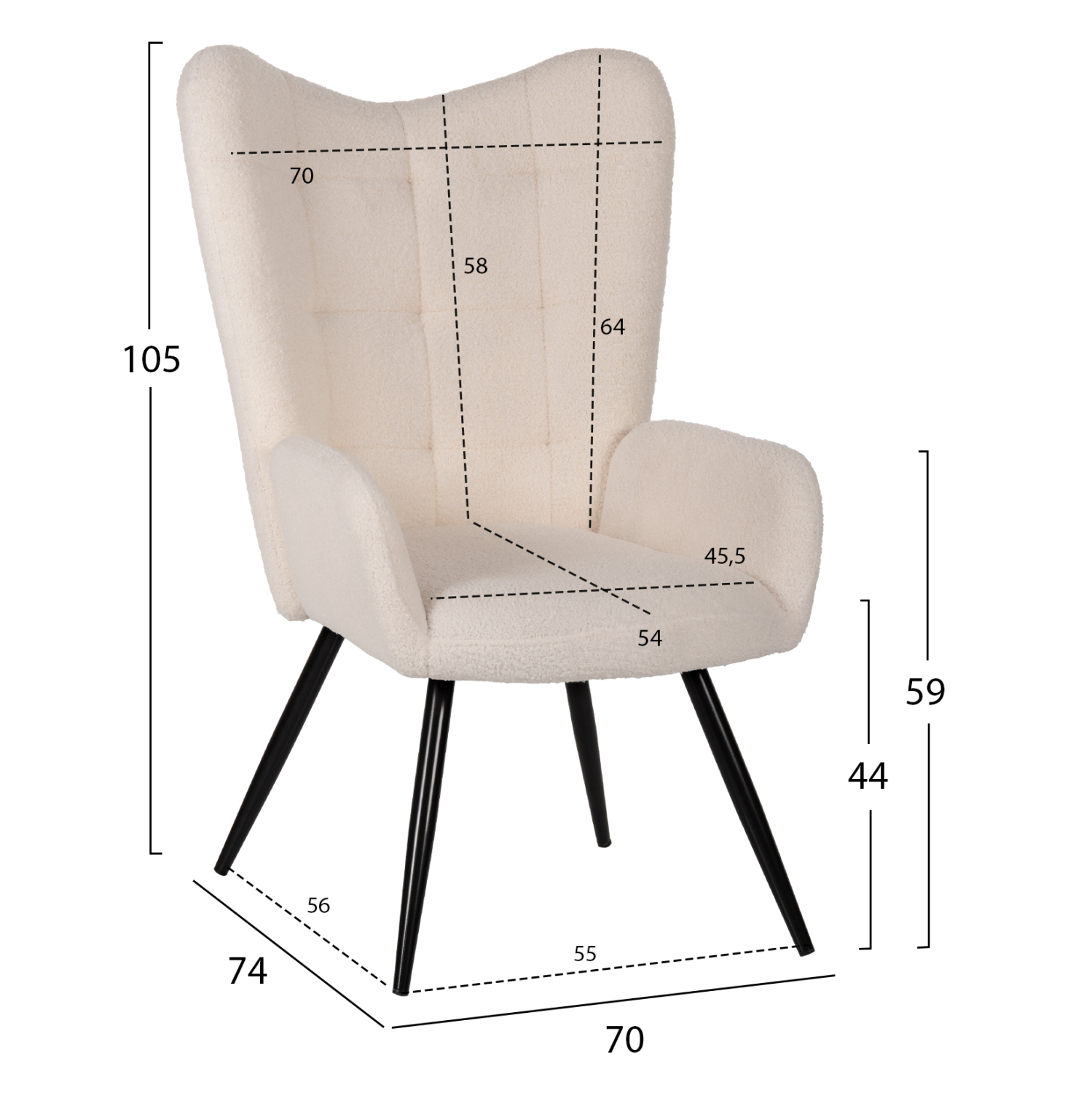 Διάσταση πλάτης: 70×58-64 εκ.