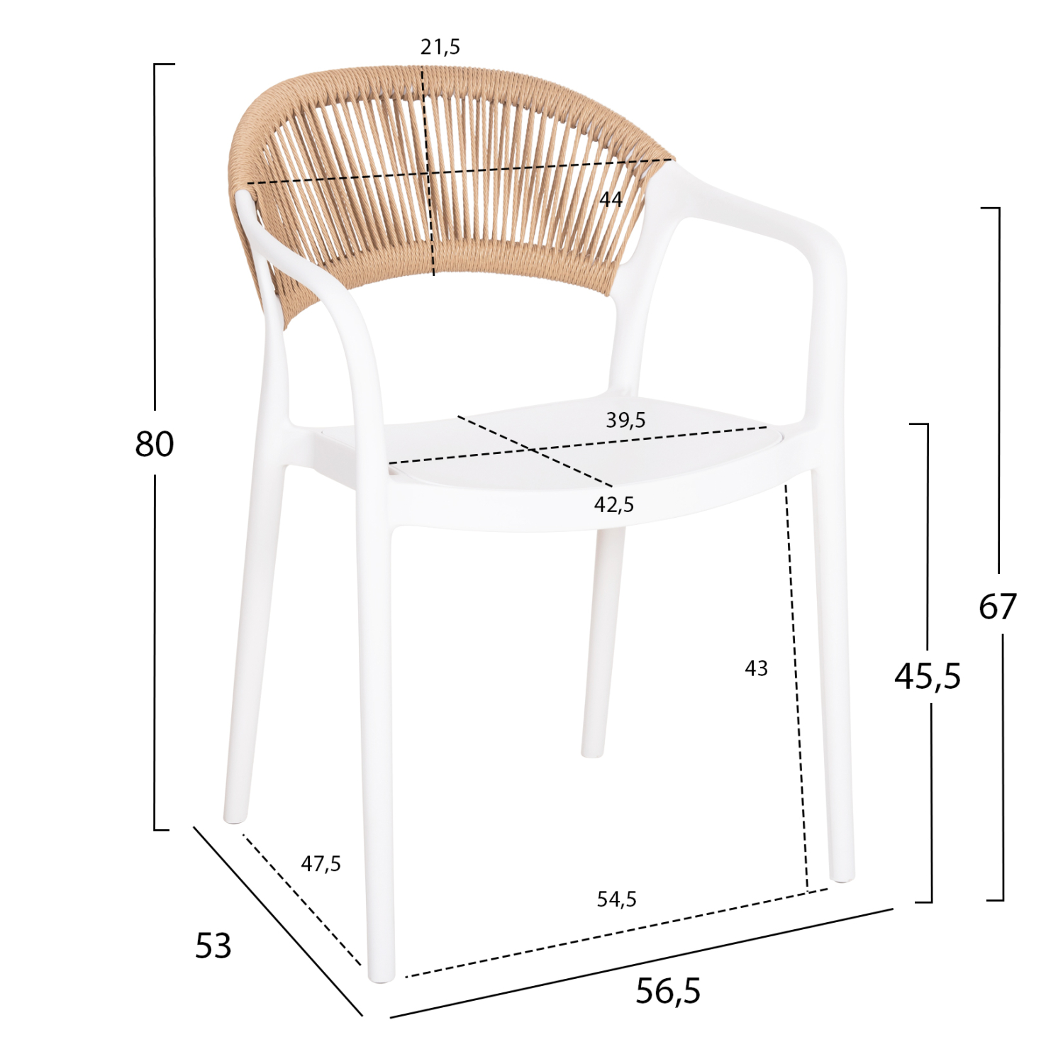ΠΟΛΥΘΡΟΝΑ ΠΟΛΥΠΡΟΠΥΛΕΝΙΟΥ FB96155.01 ΛΕΥΚΗ ΜΕ ΜΠΕΖ ΣΧΟΙΝΙ 56,5x53x80Υεκ. Πολυθρόνες Λευκό Μπεζ Σχοινί