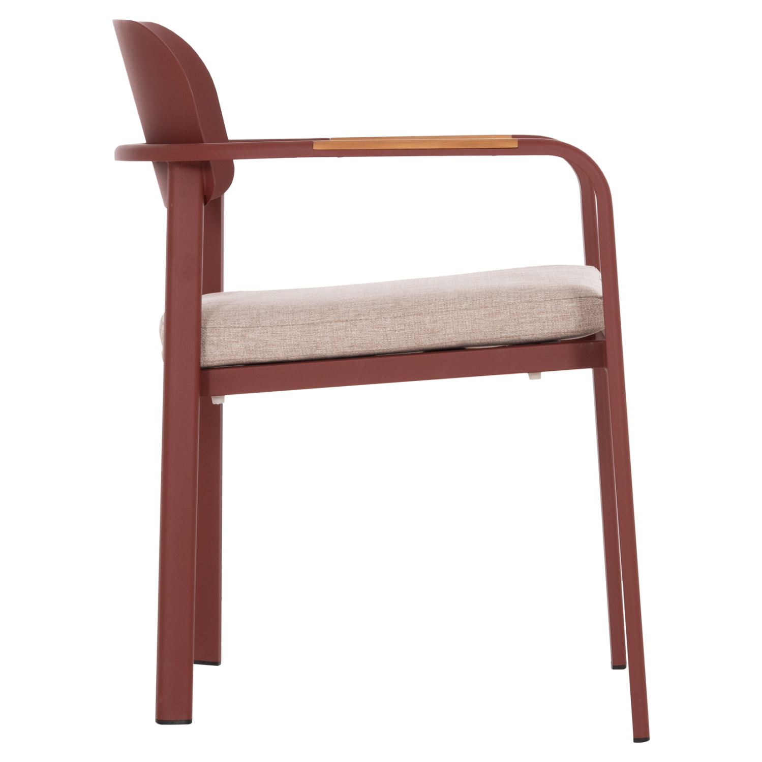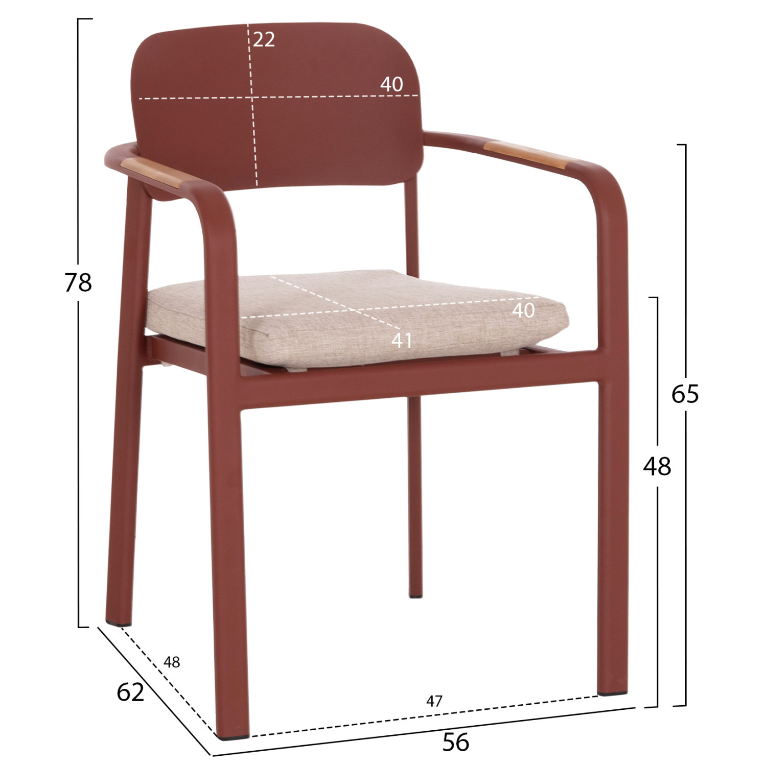 Η πολυθρόνα εξωτερικού χώρου FB96414.07 συνδυάζει μοντέρνα αισθητική, ανθεκτικά υλικά και πρακτική λειτουργικότητα. Ο σκελετός από αλουμίνιο σε ΚΕΡΑΜΙΔΙ χρώμα προσφέρει υψηλή αντοχή στις εξωτερικές συνθήκες, ενώ τα διακοσμητικά τελειώματα από ξύλο teak στα μπράτσα προσθέτουν φυσική και ζεστή πινελιά. Το μαξιλάρι καθίσματος διαθέτει κάλυμμα OLEFIN σε ΜΠΕΖ χρώμα και αφρό 25D για άνεση κατά τη χρήση. Στοιβαζόμενη για εύκολη αποθήκευση.