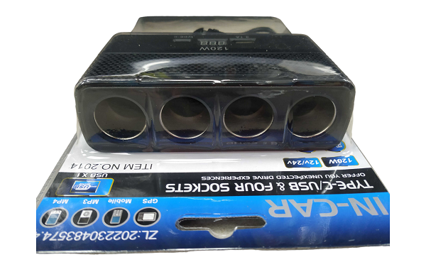 Πολύπριζο φόρτισης αναπτήρα αυτοκινήτου με 4 παροχές – USB+Type-C – CD080462 – 804629