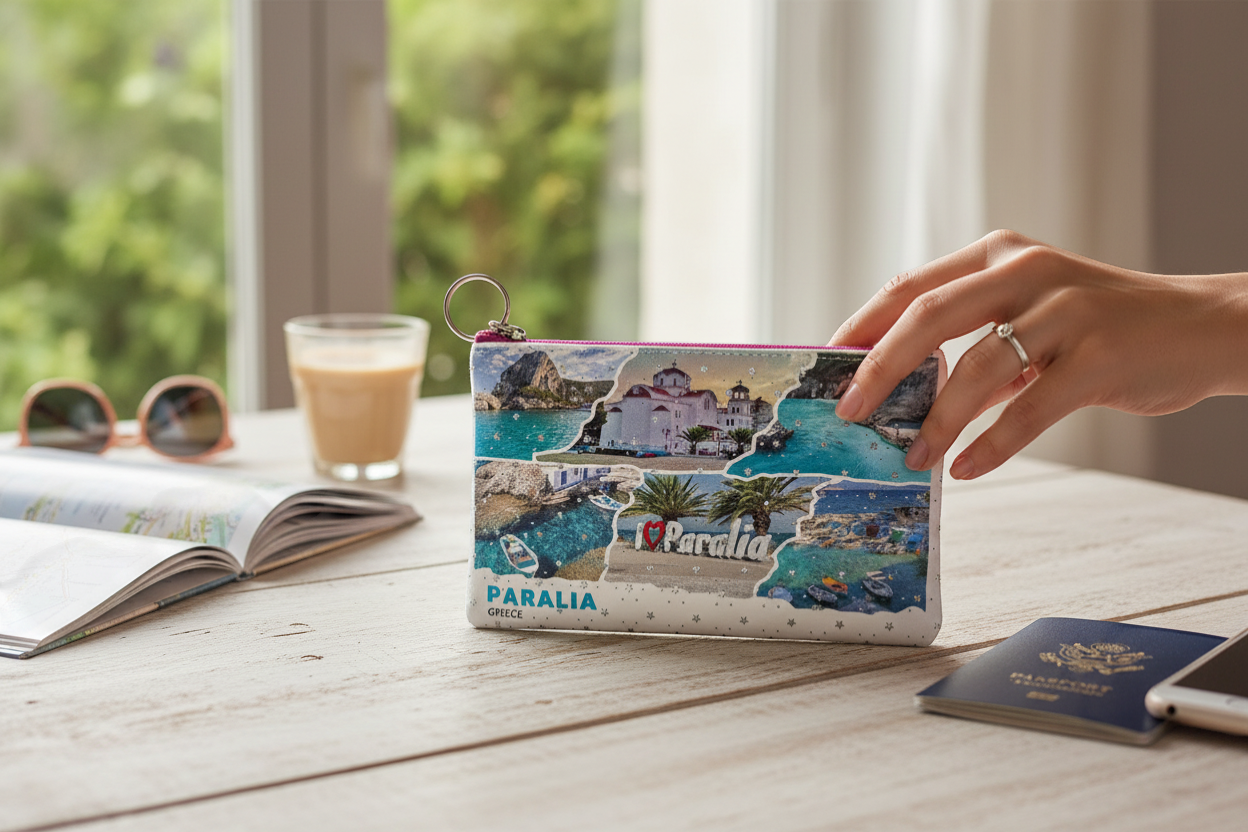 Πορτοφόλι Souvenir μπρελόκ – PVC – Paralia – 16*10cm – 871709 Πορτοφόλι souvenir μπρελόκ από PVC, ιδανικό για την αποθήκευση κερμάτων, κλειδιών και μικροαντικειμένων στην καθημερινότητα. Κατασκευασμένο από ανθεκτικό PVC, προσφέρει προστασία από φθορές και υγρασία, ενώ το πρακτικό και ελαφρύ μέγεθός του το καθιστά εύκολο στη μεταφορά σε τσάντα ή σακίδιο. Το ενσωματωμένο μπρελόκ επιτρέπει την άμεση προσαρμογή σε κλειδιά, εξασφαλίζοντας γρήγορη πρόσβαση και ευκολία χρήσης όπου κι αν βρίσκεστε. Με μοντέρνο souvenir σχεδιασμό, αποτελεί μια πρακτική και λειτουργική επιλογή για καθημερινή χρήση, συνδυάζοντας αντοχή, ευκολία και κομψότητα σε ένα μικρό και χρήσιμο αξεσουάρ.