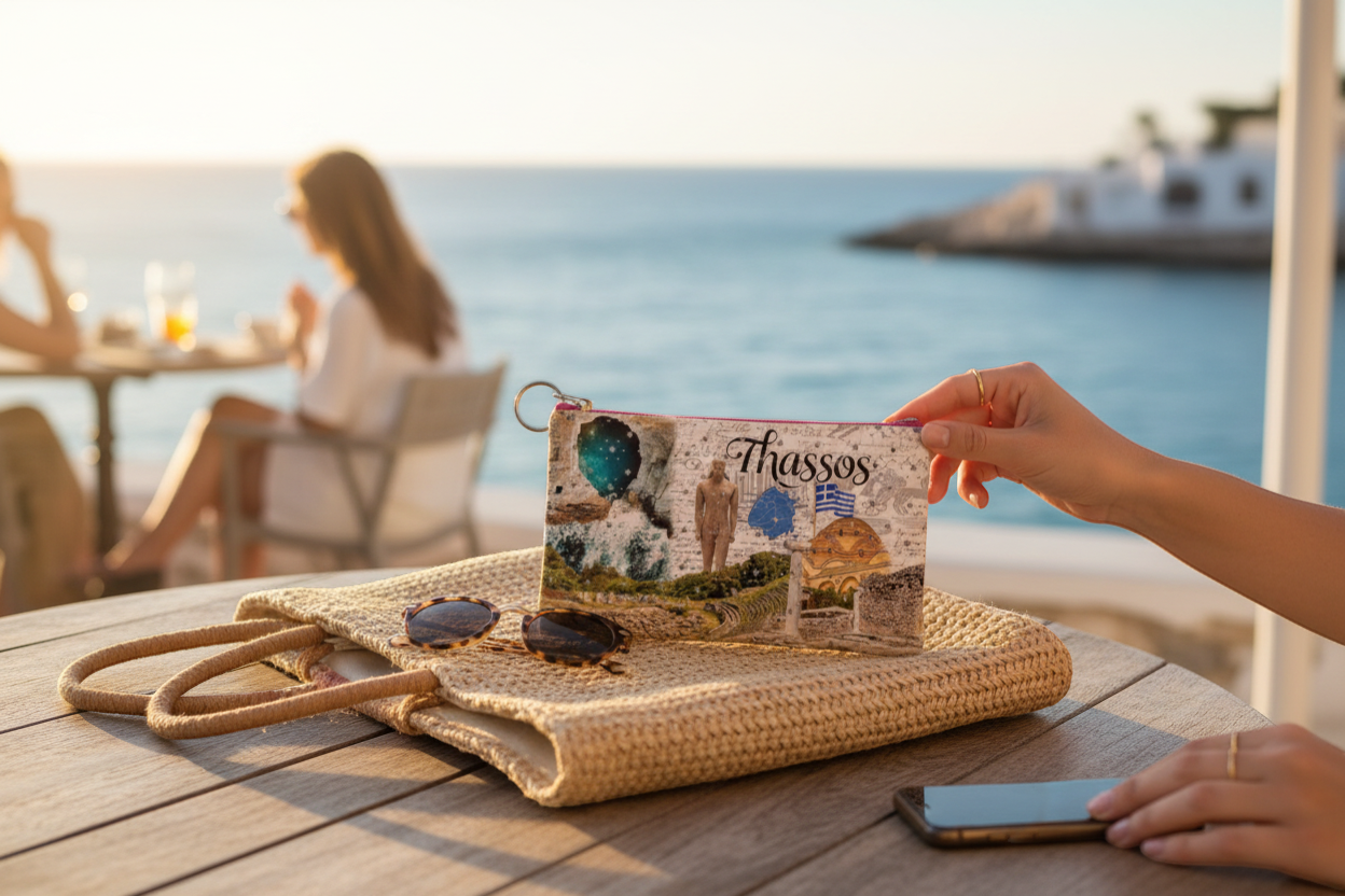 Πορτοφόλι Souvenir μπρελόκ – PVC – Thassos – 16*10cm – 871715 Πορτοφόλι souvenir μπρελόκ από PVC, ιδανικό για την αποθήκευση κερμάτων, κλειδιών και μικροαντικειμένων στην καθημερινότητα. Κατασκευασμένο από ανθεκτικό PVC, προσφέρει προστασία από φθορές και υγρασία, ενώ το πρακτικό και ελαφρύ μέγεθός του το καθιστά εύκολο στη μεταφορά σε τσάντα ή σακίδιο. Το ενσωματωμένο μπρελόκ επιτρέπει την άμεση προσαρμογή σε κλειδιά, εξασφαλίζοντας γρήγορη πρόσβαση και ευκολία χρήσης όπου κι αν βρίσκεστε. Με μοντέρνο souvenir σχεδιασμό, αποτελεί μια πρακτική και λειτουργική επιλογή για καθημερινή χρήση, συνδυάζοντας αντοχή, ευκολία και κομψότητα σε ένα μικρό και χρήσιμο αξεσουάρ.
