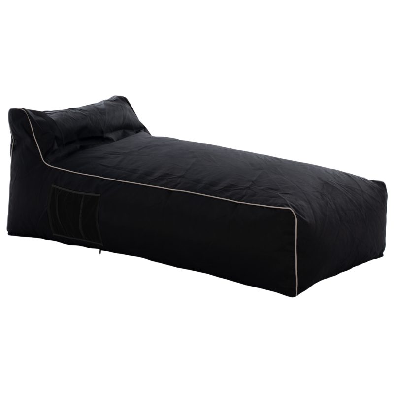 Επαγγελματικό πουφ ξαπλώστρα, κατασκευασμένο από textline 2×1 σε μαύρη απόχρωση, πολύ μεγάλης αντοχής στον ήλιο, την υγρασία και την τριβή.