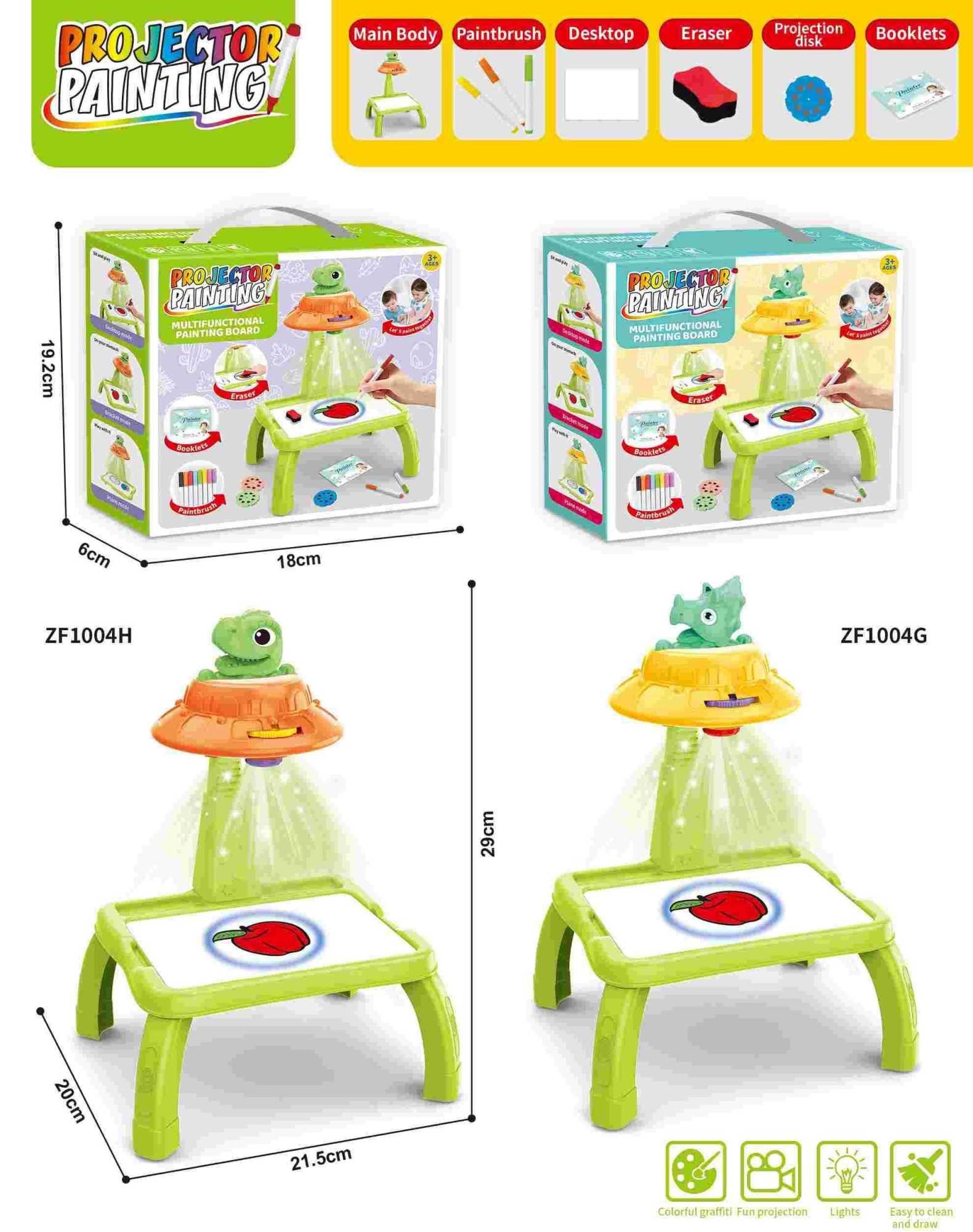 Προτζέκτορας ζωγραφικής σε υπέροχο σχεδιασμό Δεινόσαυρος, που θα σε βοηθήσει να δημιουργήσεις πανεύκολα ζωγραφιές που θα εντυπωσιάσουν! Περιλαμβάνει 3 κάρτες με 8 slides η καθεμία και μαρκαδόρους όλων των χρωμάτων. Ανθεκτική κατασκευή που στήνεται πανεύκολα.
