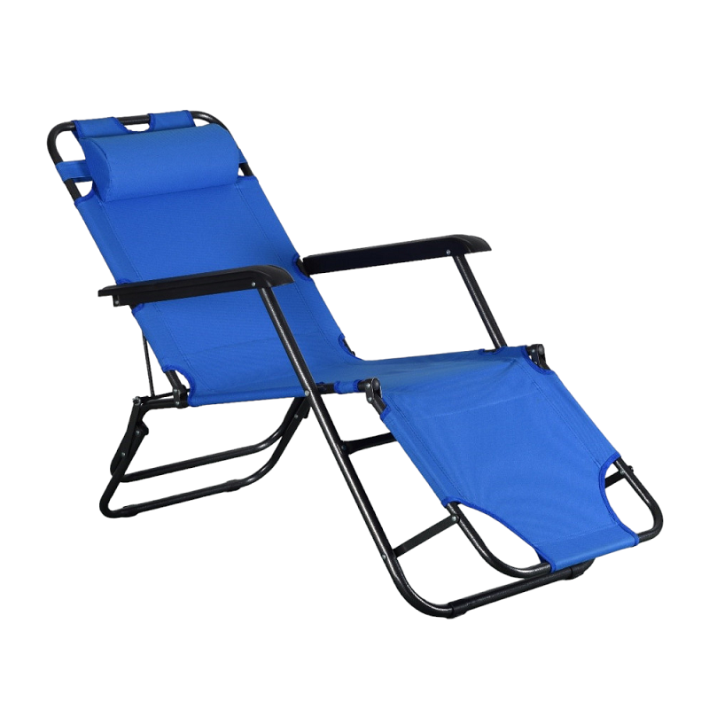 Πτυσσόμενη καρέκλα παραλίας, με πλάτη και στήριγμα ποδιών που επεκτείνονται και μετατρέπεται εύκολα σε ανάκλιντρο. Διαθέτει αφαιρούμενο μαξιλαράκι και αδιάβροχο ύφασμα που καθαρίζεται εύκολα. Στιβαρός σιδερένιος σκελετός, που διπλώνει με μία κίνηση, για εύκολη μεταφορά και αποθήκευση. Ιδανική για την παραλία, το camping, το ψάρεμα, τον κήπο κα.