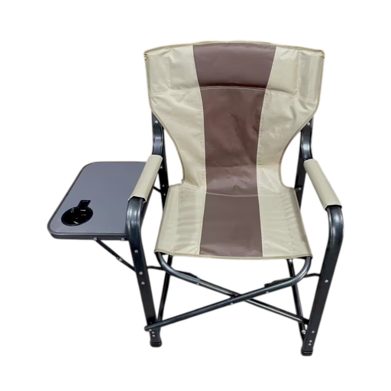 Πτυσσόμενη καρέκλα παραλίας-camping με ενσωματωμένο πτυσσόμενο τραπεζάκι στη δεξιά πλευρά, με ποτηροθήκη. Διαθέτει ανθεκτικό, αδιάβροχο ύφασμα που καθαρίζεται εύκολα, με ειδικό διχτυωτό ύφασμα στη μέση για να αναπνέει και να μην σας προκαλεί αίσθηση ζέστης. Στιβαρός σιδερένιος σκελετός που διπλώνει με μία κίνηση, για εύκολη μεταφορά και αποθήκευση. Ιδανική για την παραλία, το camping, το ψάρεμα, τον κήπο κα.