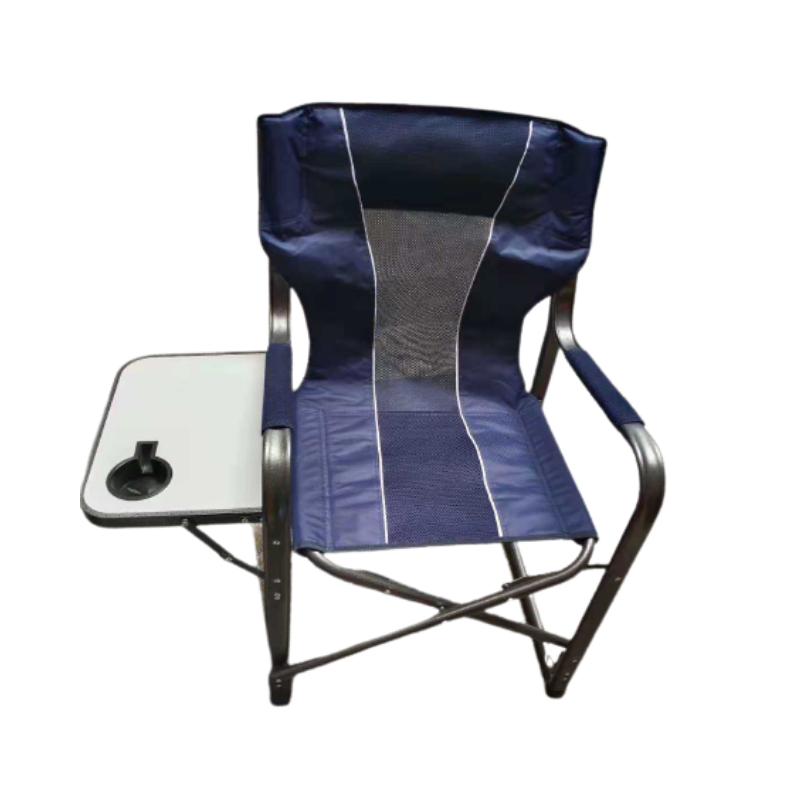 Πτυσσόμενη καρέκλα παραλίας-camping με ενσωματωμένο πτυσσόμενο τραπεζάκι στη δεξιά πλευρά, με ποτηροθήκη. Διαθέτει ανθεκτικό, αδιάβροχο ύφασμα που καθαρίζεται εύκολα, με ειδικό διχτυωτό ύφασμα στη μέση για να αναπνέει και να μην σας προκαλεί αίσθηση ζέστης. Στιβαρός σιδερένιος σκελετός που διπλώνει με μία κίνηση, για εύκολη μεταφορά και αποθήκευση. Ιδανική για την παραλία, το camping, το ψάρεμα, τον κήπο κα.