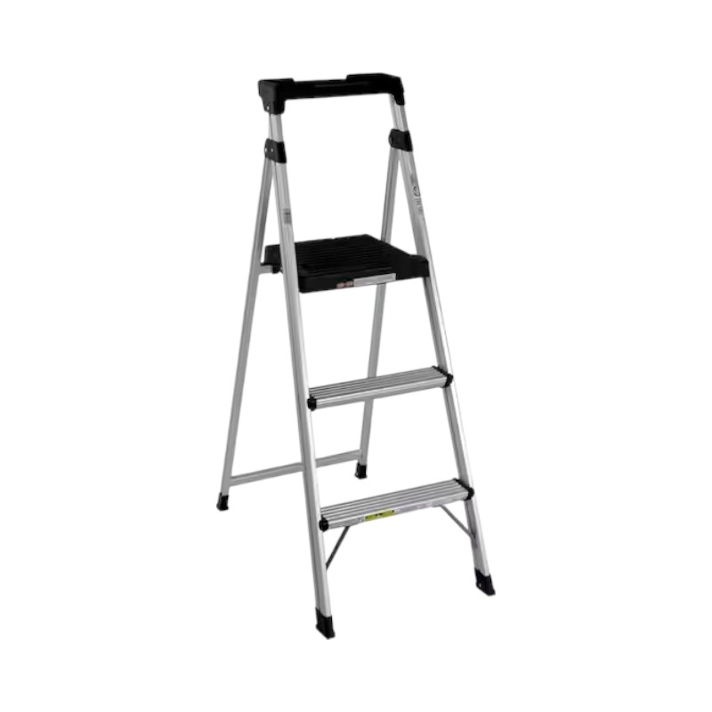 Πτυσσόμενη σκάλα 3 σκαλιών, με στιβαρή κατασκευή αλουμινίου, και εύκολη αποθήκευση.