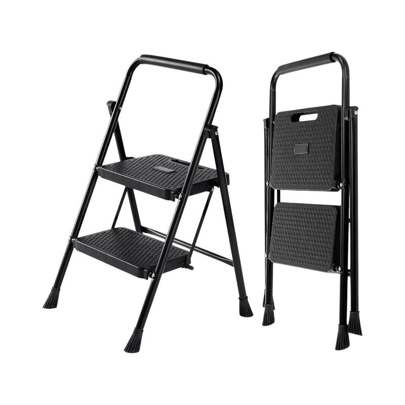 Πτυσσόμενη σκάλα 2 σκαλιών, με στιβαρή σιδερένια κατασκευή, και εύκολη αποθήκευση.