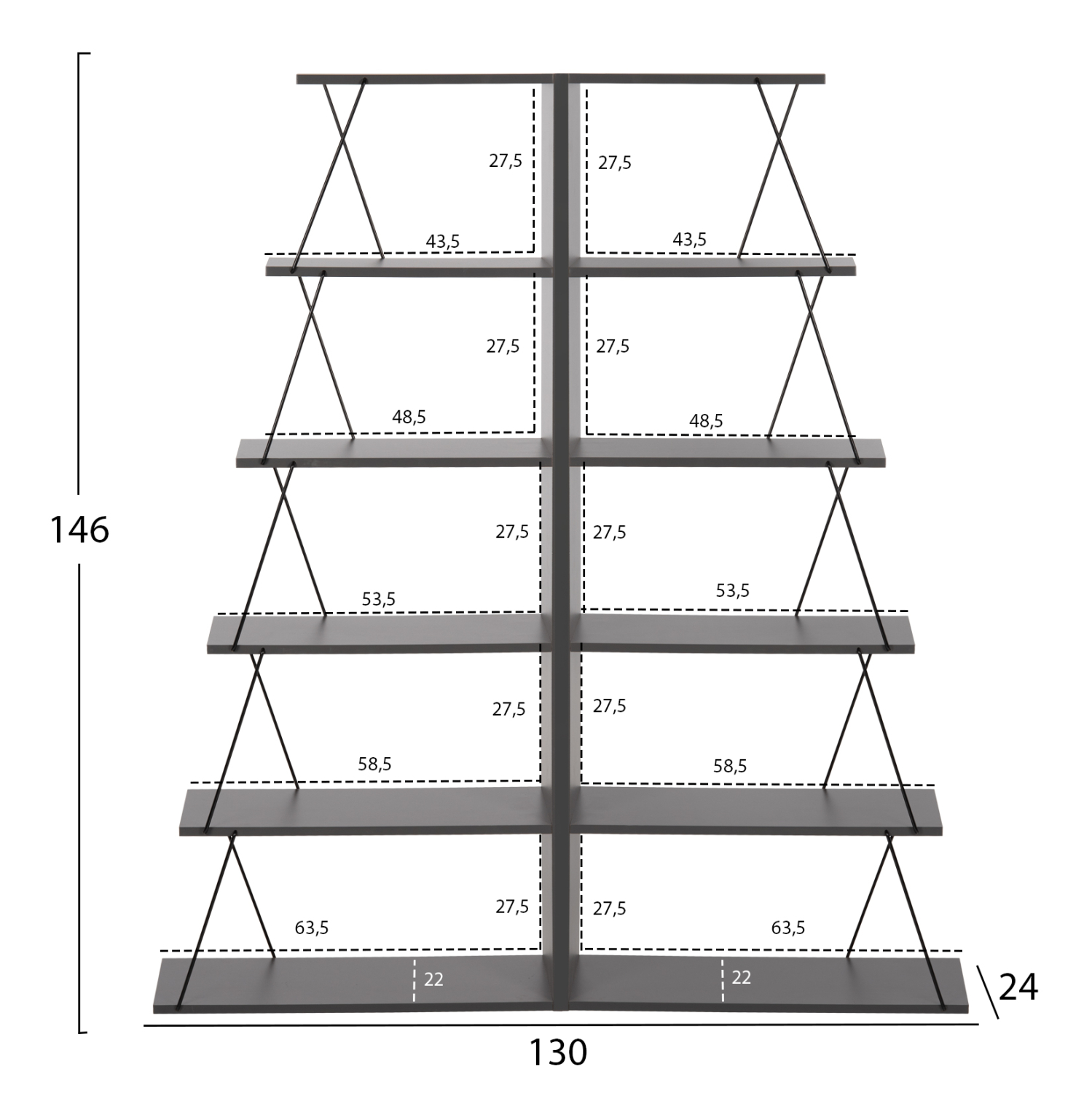 Διαστάσεις ραφιού Ε: 63,5x22x27,5Υ εκ.