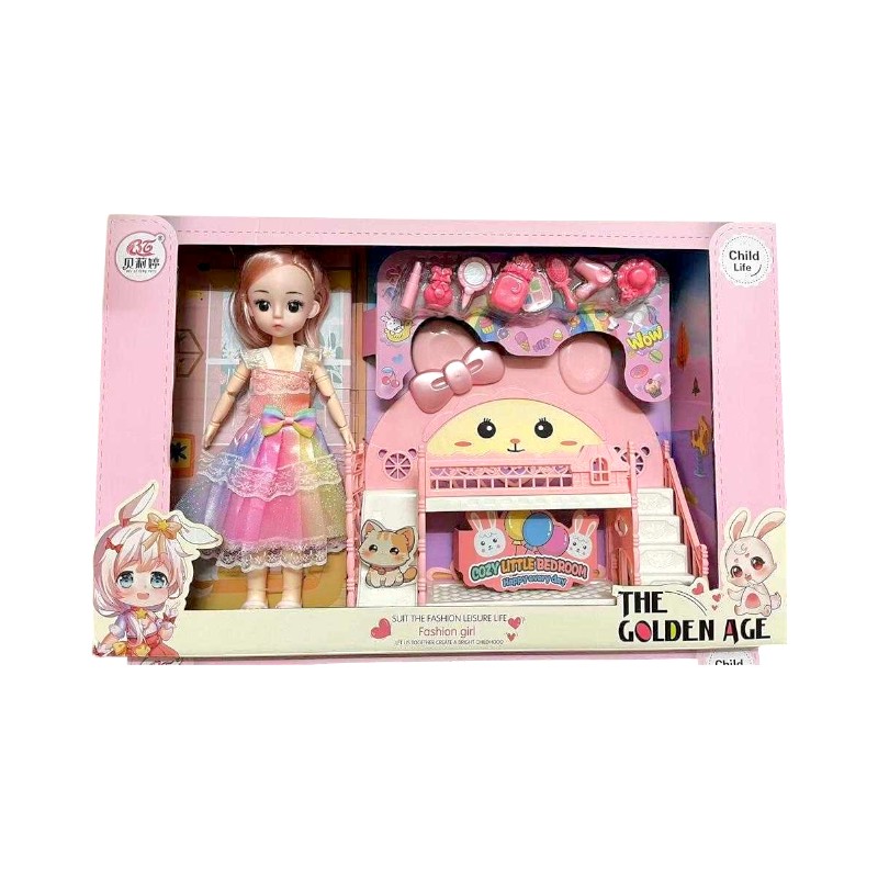 Σετ κούκλα σε vintage στυλ, με μίνι κρεβατάκι και πλήρες σετ αξεσουάρ ομορφιάς για να την περιποιηθείς όπως εσύ θα ήθελες!