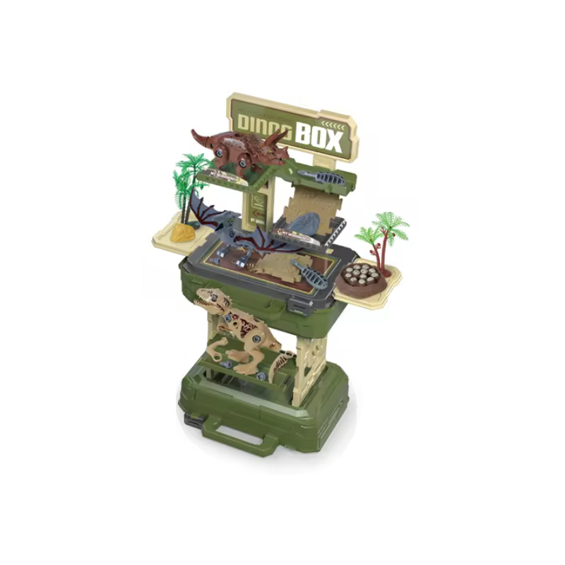 Σετ παιχνίδι πάρκο Δεινοσαύρων σε υπέροχο σχεδιασμό με πολλά αξεσουάρ, σε πρακτικό βαλιτσάκι μεταφοράς που μετατρέπεται πανεύκολα σε πάγκο παιχνιδιού.