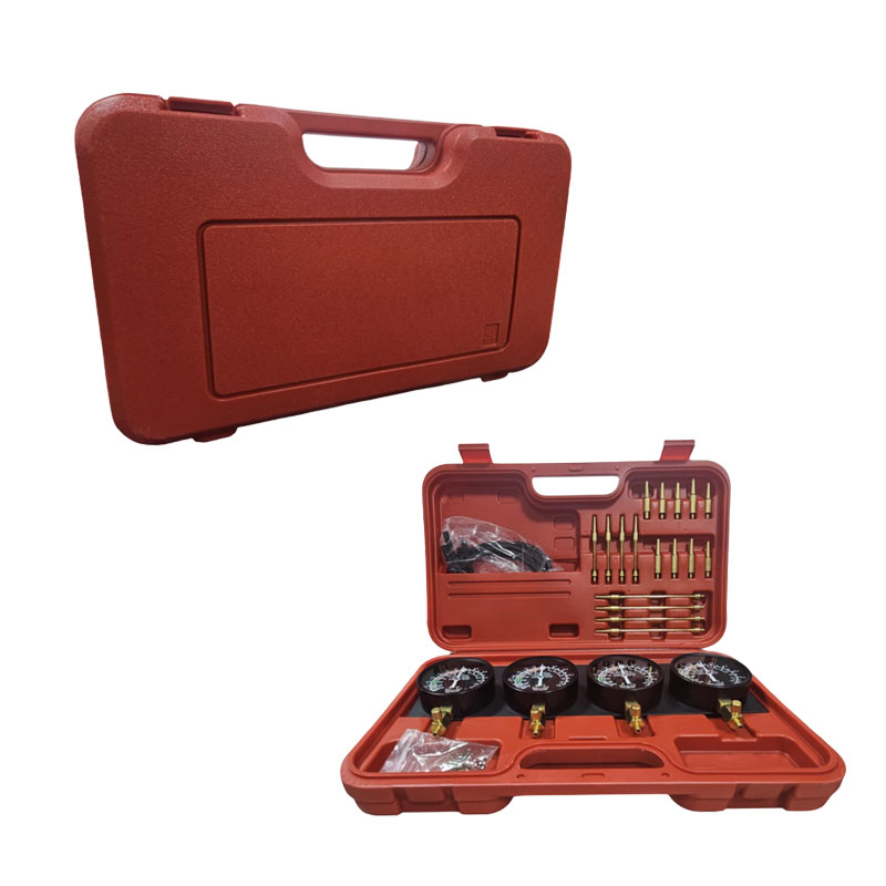 Επαγγελματικό σετ εργαλείων για συγχρονισμό καρμπυρατέρ, κατάλληλο για μοτοσυκλέτες και κινητήρες πολλαπλών κυλίνδρων. Διαθέτει 4 αναλογικά μανόμετρα κενού υψηλής ακρίβειας και πλήρη σειρά εξαρτημάτων (σωληνάκια, βαλβίδες, αντάπτορες και εξαρτήματα σύνδεσης), όλα οργανωμένα σε ανθεκτική πλαστική βαλίτσα.