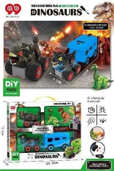 Εκπαιδευτικό παιχνίδι με οχήματα σε σχέδιο Δεινόσαυρος και δυνατότητα συναρμολόγησης-αποσυναρμολόγησης για ένα δημιουργικό παιχνίδι που εξασκεί τη λεπτή κινητικότητα. Περιλαμβάνονται τα εργαλεία.