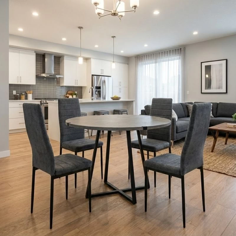 Σετ τραπεζαρία 5τμχ Rubes – Rosa Megapap χρώμα γκρι σκυροδέματος – γκρι Ø100×78εκ.