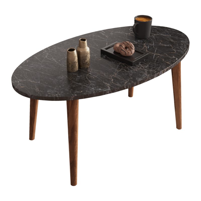 Ανακαλύψτε το FB918180.02. Ένα σετ που θα ικανοποιήσει και θα εξυπηρετήσει κάθε σας ανάγκη στο χώρο του σαλονιού. Αποτελείται από ένα οβάλ τραπέζι σαλονιού και 3 στρογγυλά βοηθητικά τραπεζάκια σε διαφορετικά ύψη. Οι επιφάνειες των τραπεζιών είναι από μελαμίνη σε όψη ΜΑΥΡΟΥ ΜΑΡΜΑΡΟΥ, ενώ τα πόδια τους είναι ξύλινα σε ΚΑΡΥΔΙ χρωματισμό.
