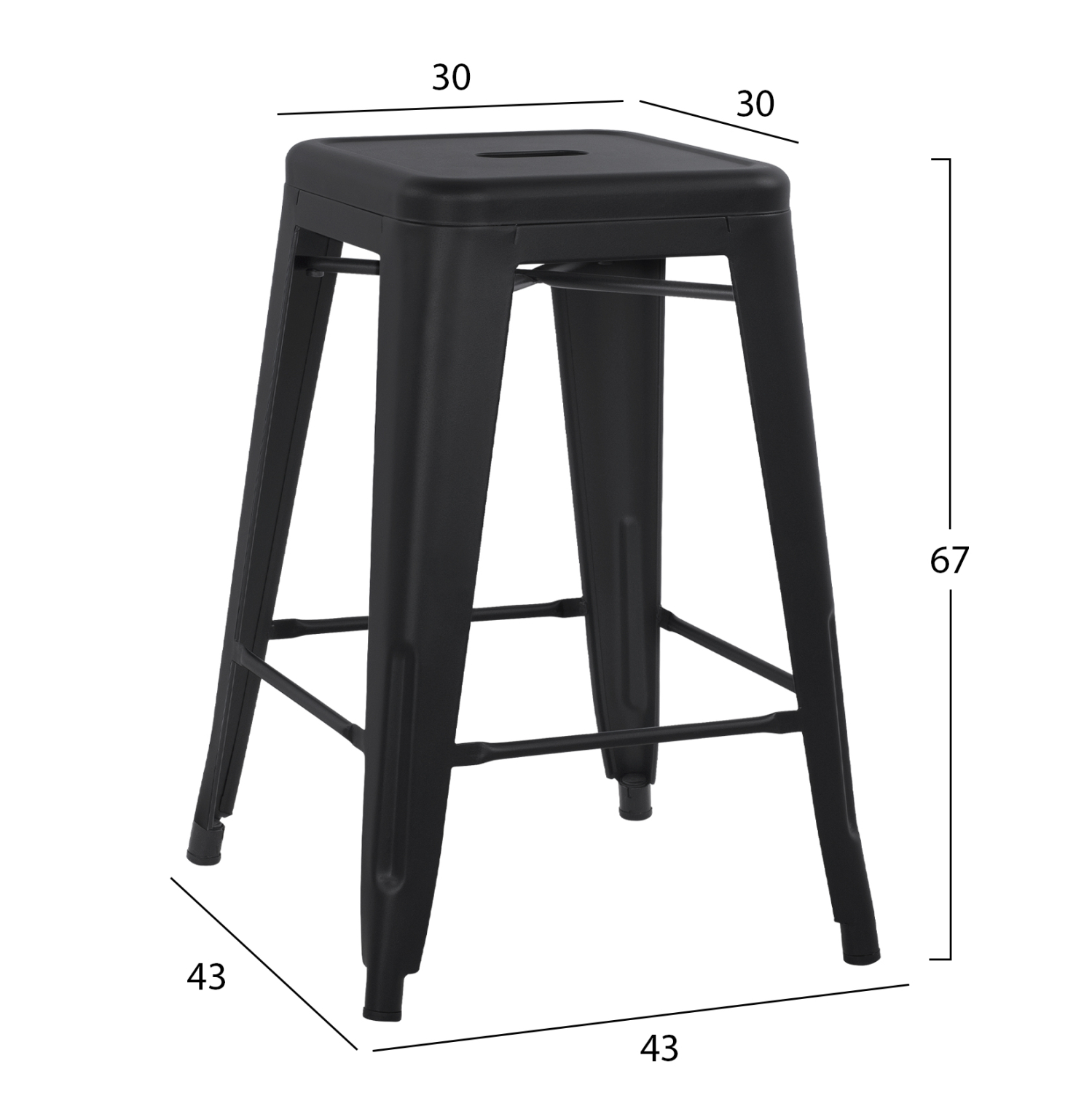 Σκαμπό Μπαρ μεσαίου ύψους FB98573.42 σε τετράγωνη υλοποίηση, εξολοκλήρου μεταλλικό σε ΜΑΥΡΟ ΜΑΤ χρώμα. Σε μοντέρνο και λιτό design INDUSTRIAL με υποπόδιο, αποτελεί την τελευταία τάση στην κατηγορία του.