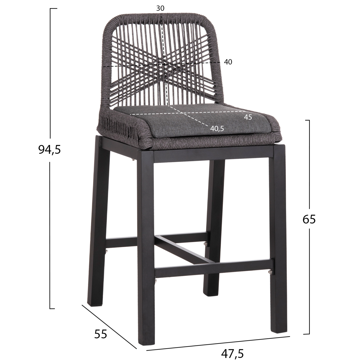 Το σκαμπό μπαρ μεσαίου ύψους FB95791.23 για επαγγελματική χρήση, είναι αυτό ακριβώς που θέλετε! Μοντέρνο, άνετο και σταθερό! Η διχρωμία του ΜΑΥΡΟΥ σκελετού με το ΓΚΡΙ κάθισμα και την ΓΚΡΙ επένδυση από ποιοτικό σχοινί στην πλάτη είναι μοναδική. Η πλάτη είναι πρακτική ενώ το κάθισμα είναι ουσιαστικά μια βάση στην οποία τοποθετείται το μαξιλάρι.
