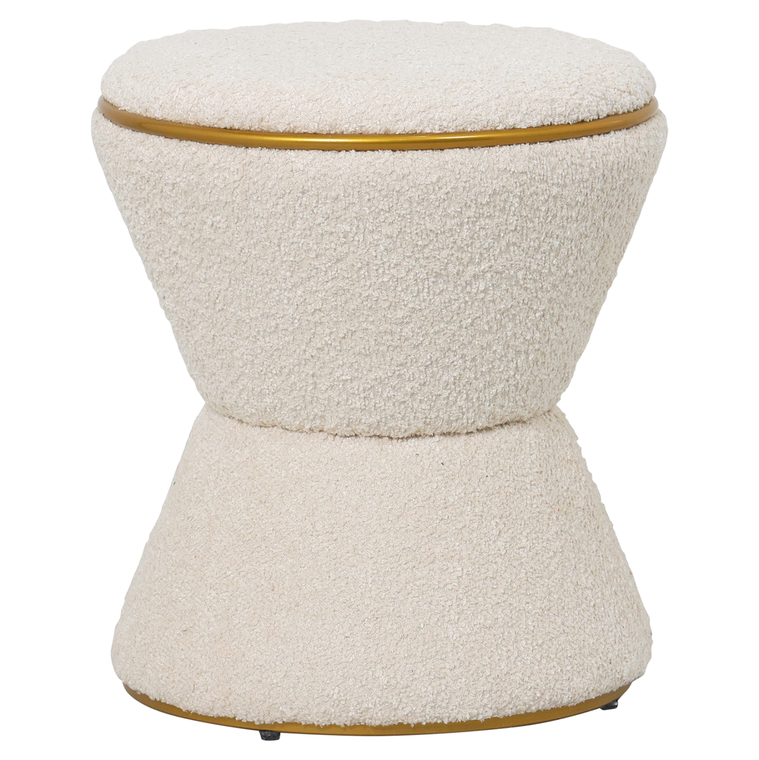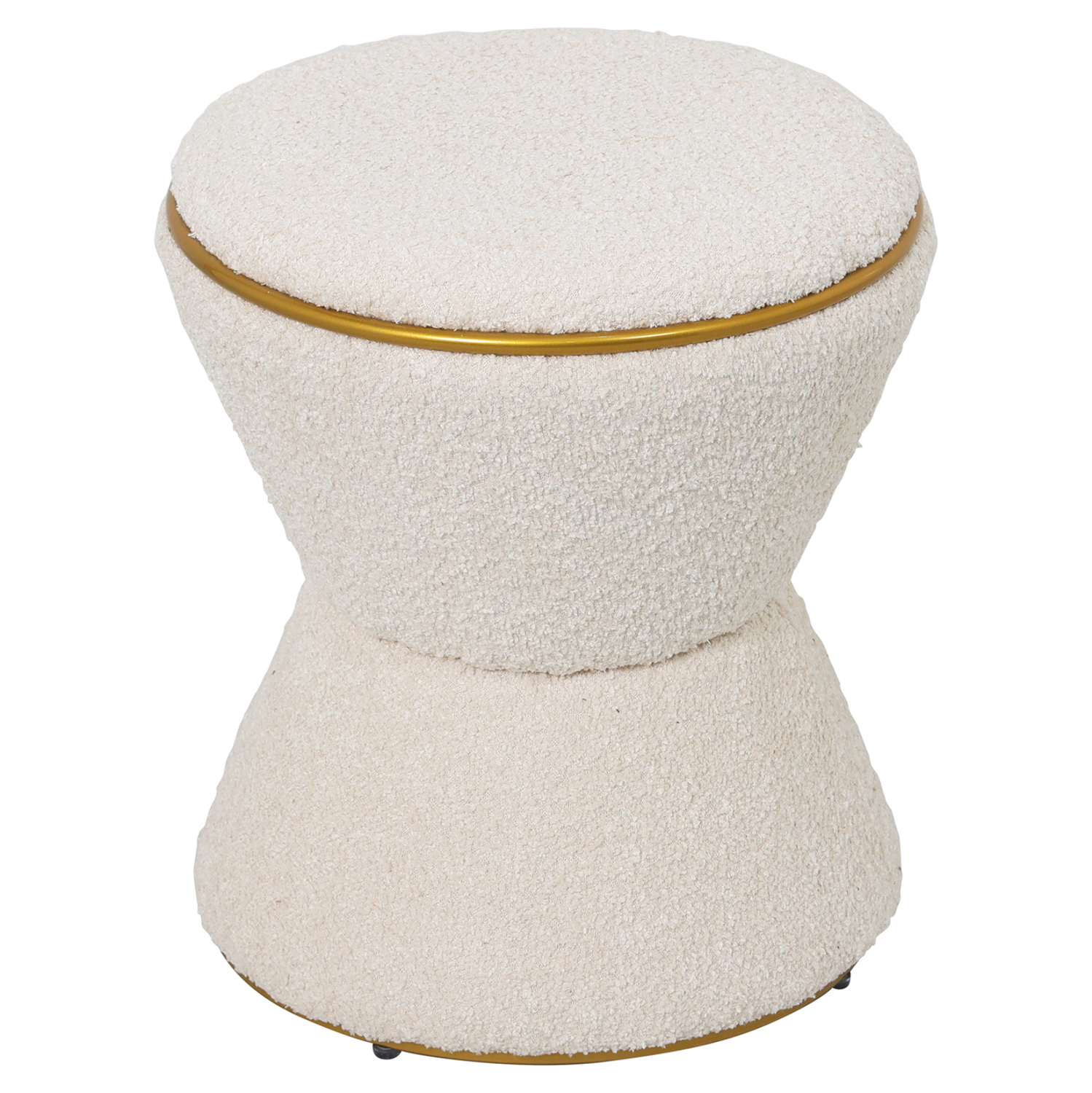 Σκαμπό κυλινδρικό FB99604.16 επενδυμένο με ΕΚΡΟΥ μπουκλέ ζεστό ύφασμα και ΧΡΥΣΗ μεταλλική λεπτομέρεια («δαχτυλίδι») στο κάθισμα και στην βάση.