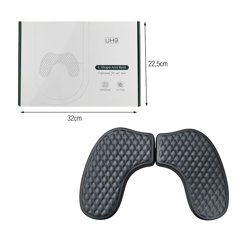 Το στήριγμα χεριών UH9 σε σχήμα U είναι σχεδιασμένο για άνετη και σταθερή υποστήριξη κατά τη διάρκεια του μανικιούρ. Η εργονομική του μορφή βοηθά στη σωστή τοποθέτηση του χεριού, μειώνοντας την κόπωση τόσο για τον επαγγελματία όσο και για τον πελάτη. Κατασκευασμένο από μαλακό, ανθεκτικό υλικό με αντιολισθητική επιφάνεια, προσφέρει υψηλή άνεση και σταθερότητα.