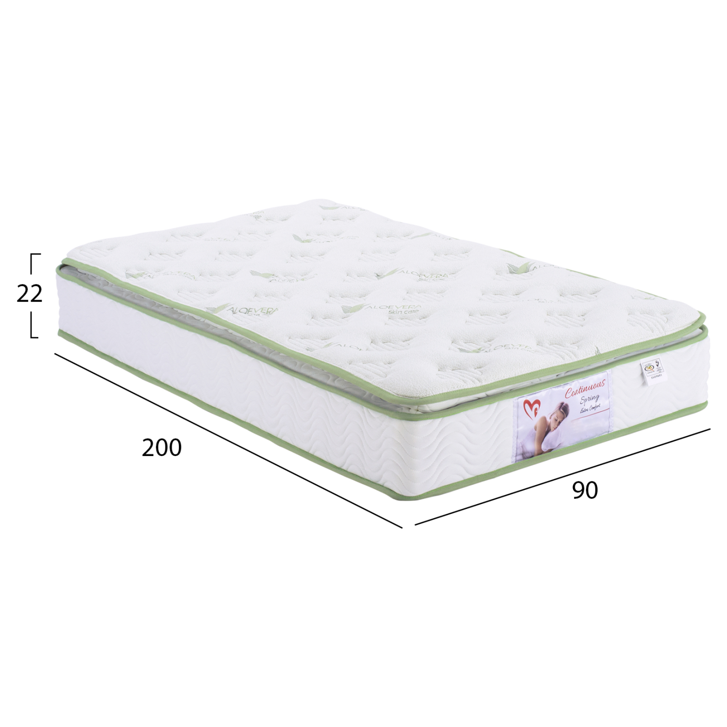 Στρώμα με συνεχόμενα ελατήρια (bonnell) σε διάσταση μονού στρώματος και μονής όψης, με ενσωματωμένο ανώστρωμα (pillow top) με ALOE VERA.