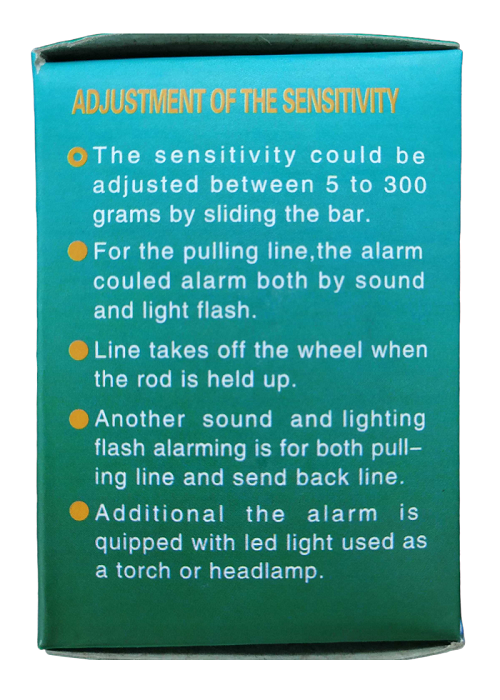 Συναγερμός για καλάμι ψαρέματος με φακό LED. Με λουράκι σιλικόνης που προσαρμόζεται στο καλάμι και σύνδεση με την πετονιά για να σας ειδοποιεί όταν υπάρχει αντίδραση από κάποιο ψάρι. Ρυθμιζόμενη ειδοποίηση από 3 έως 300gr. Ιδανικό για νυχτερινό ψάρεμα.