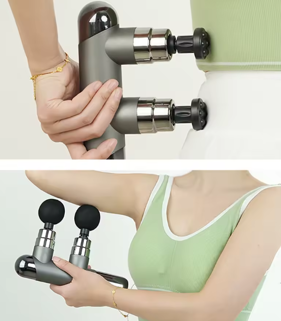 Επαναστατική συσκευή μασάζ και μυοχαλάρωσης Fascial Gun με διπλή κεφαλή και 4 διαφορετικά σετ κεφαλών για εφαρμογή σε όλα τα σημεία του σώματος που επιθυμείτε.