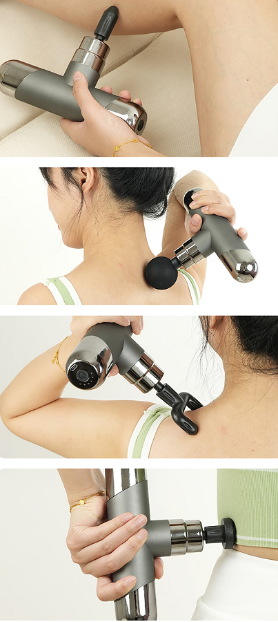 Επαναστατική συσκευή μασάζ και μυοχαλάρωσης Fascial Gun με 4 διαφορετικές κεφαλές για εφαρμογή σε όλα τα σημεία του σώματος που επιθυμείτε.