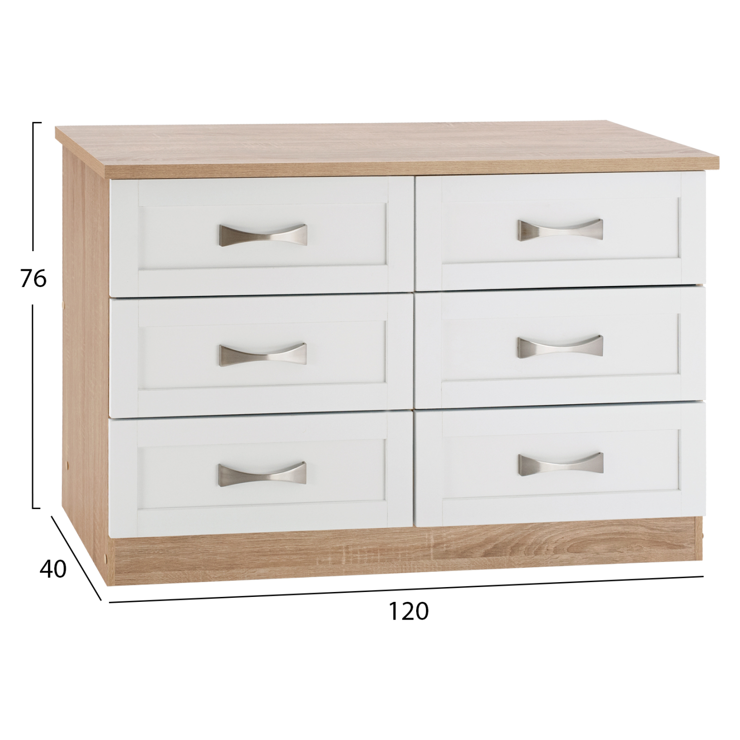 Διαθέτει έξι ευρύχωρα συρτάρια για να τοποθετήσετε τα προσωπικά σας αντικείμενα. Τα χερούλια είναι μεταλλικά σε ασημί απόχρωση.