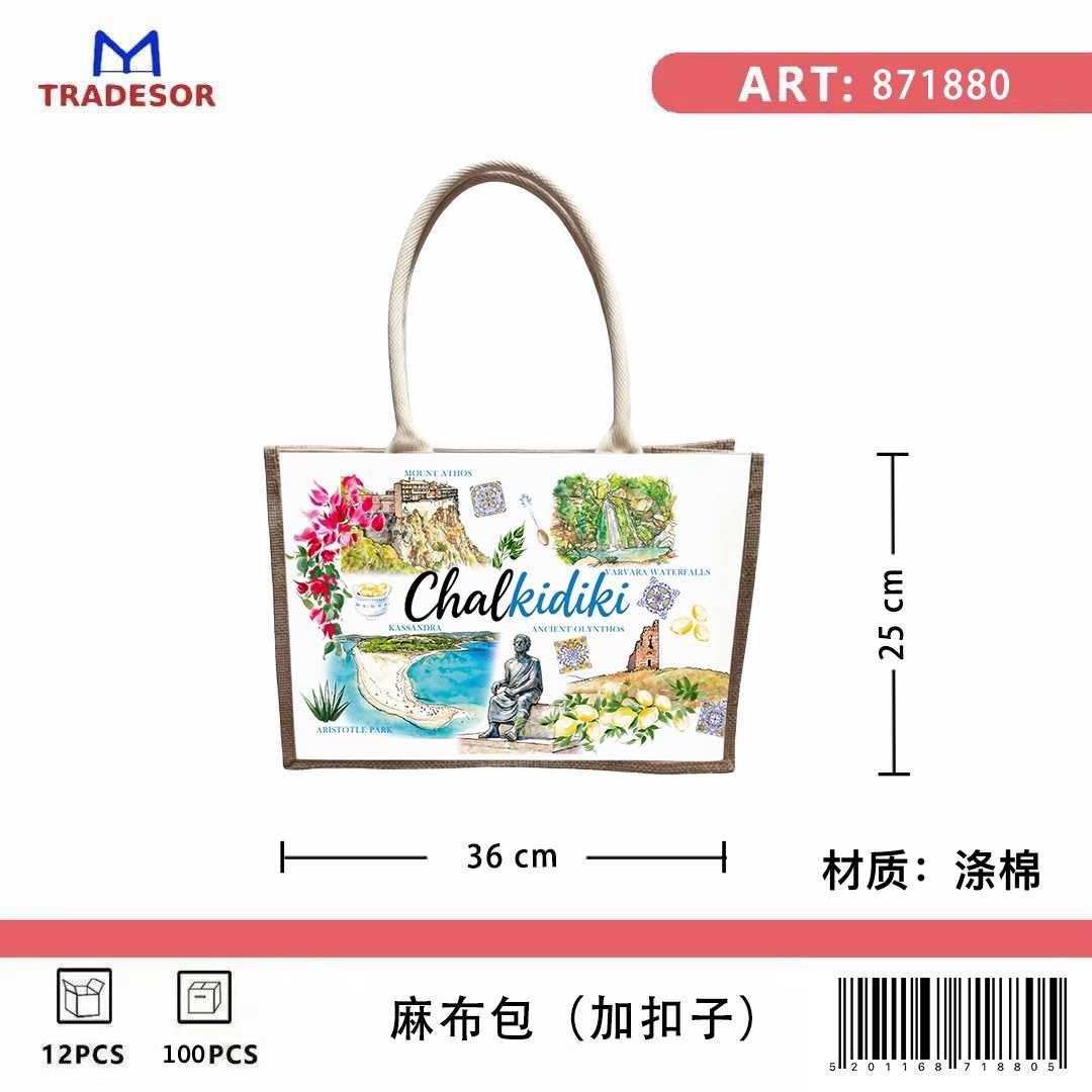 ΚΩΔΙΚΟΣ: 1648816Τουριστική τσάντα λινή με κουμπί – Chalkidiki – 36*25*16cm – 871880 5201168718805
