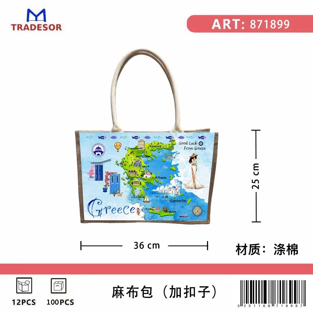Τουριστική τσάντα λινή με κουμπί – Greece – 36*25*16cm – 871899 5201168718997