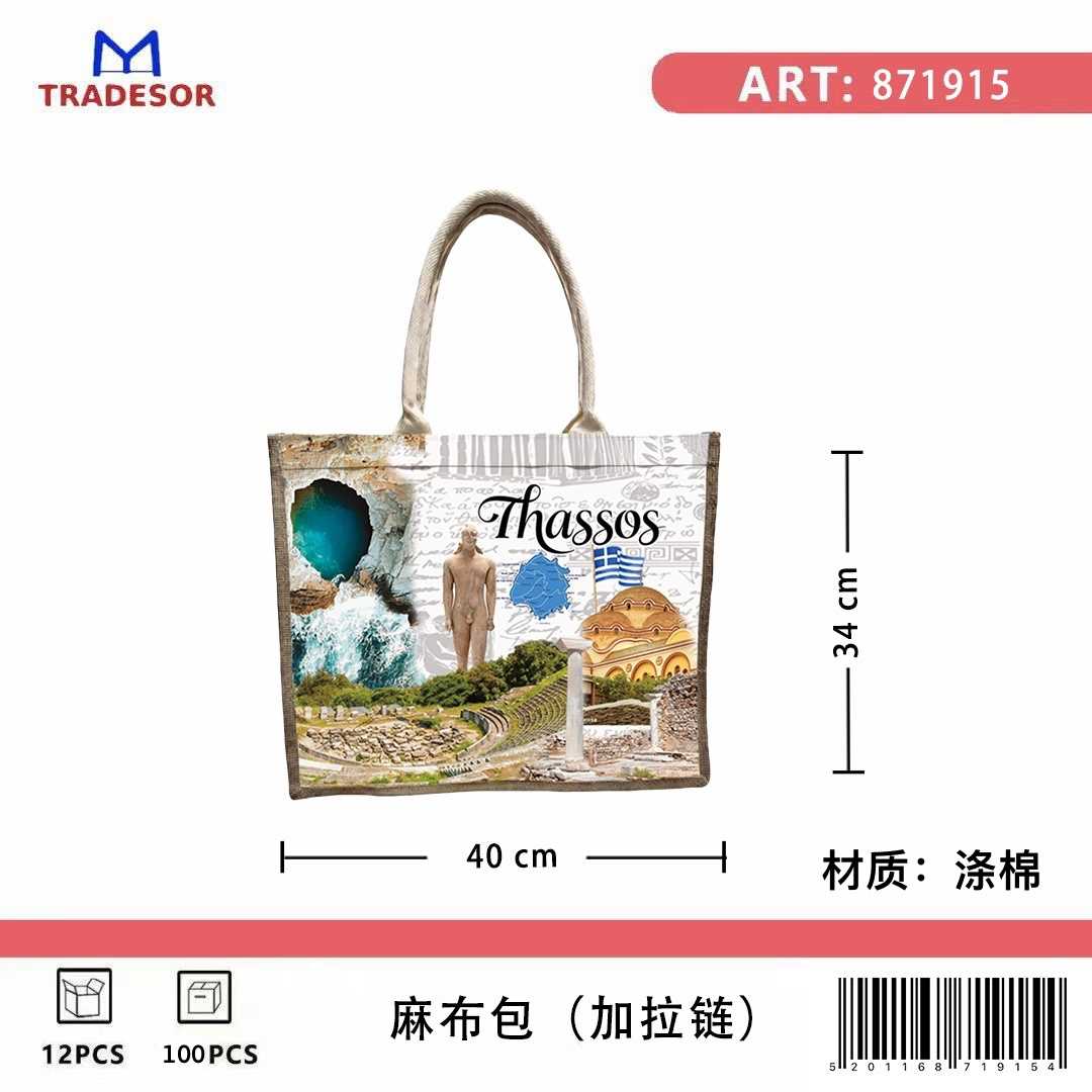 Τουριστική τσάντα λινή με φερμουάρ – Thassos – 40*34*19cm – 871915 5201168719154