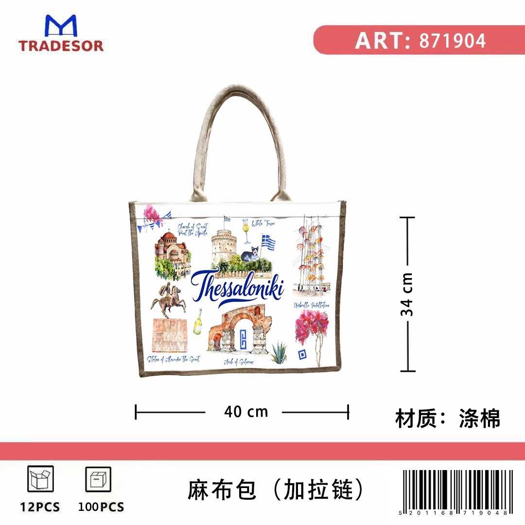 Τουριστική τσάντα λινή με φερμουάρ – Thessaloniki – 40*34*19cm – 871904