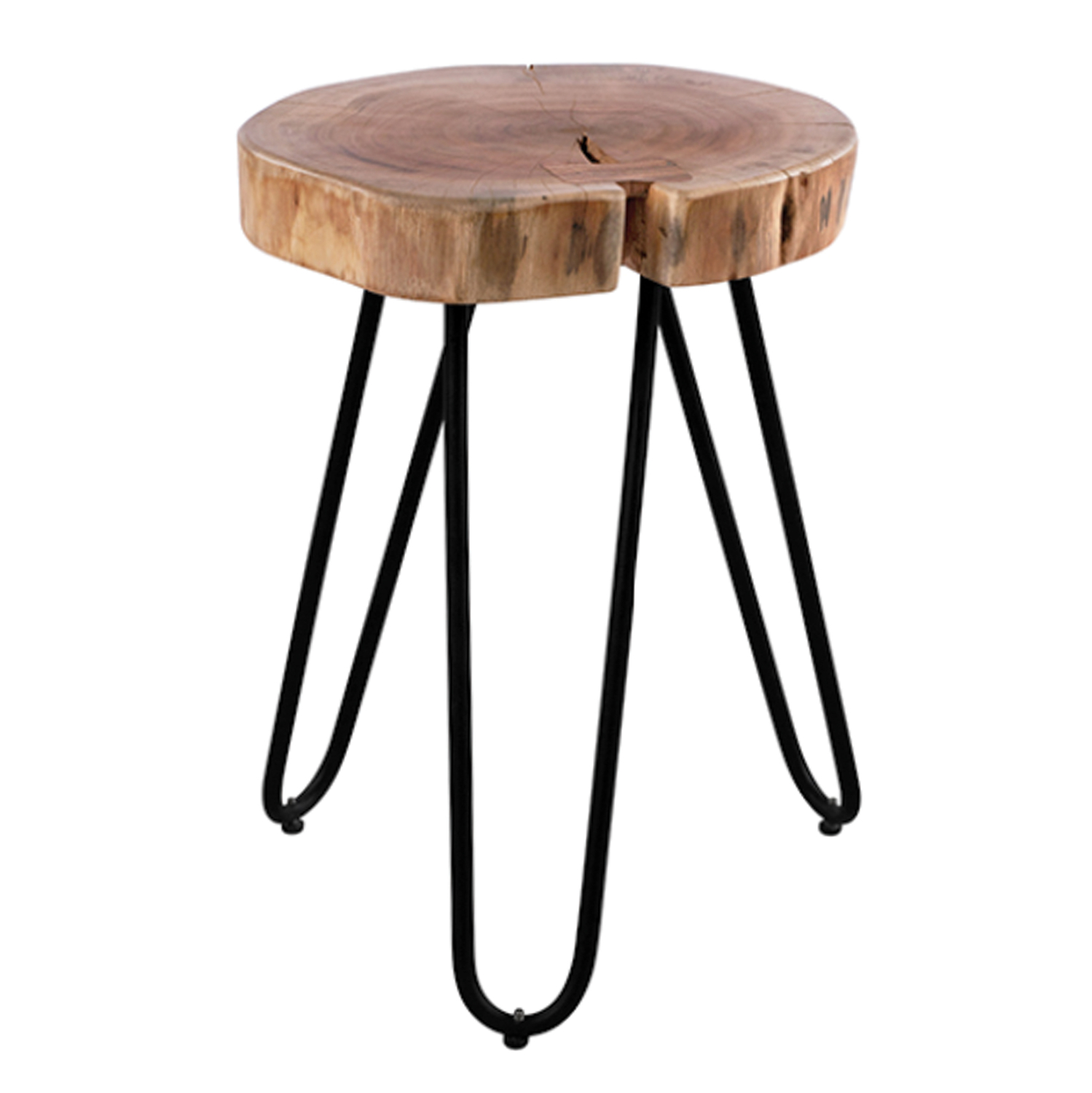 FB98208.11 Βοηθητικό τραπεζάκι—– Το τρίποδο βοηθητικό τραπεζάκι FB98208.11 είναι ο ορισμός του ρουστίκ στυλ στο έπιπλο. Το ξύλο είναι στο φυσικό του χρώμα αλλά και στην φυσική του κατάσταση, δηλαδή μια φέτα από τον κορμό του δέντρου. Τα 3 μαύρα μεταλλικά πόδια ολοκληρώνουν αυτή την πολύ απλή και πρακτική υλοποίηση.