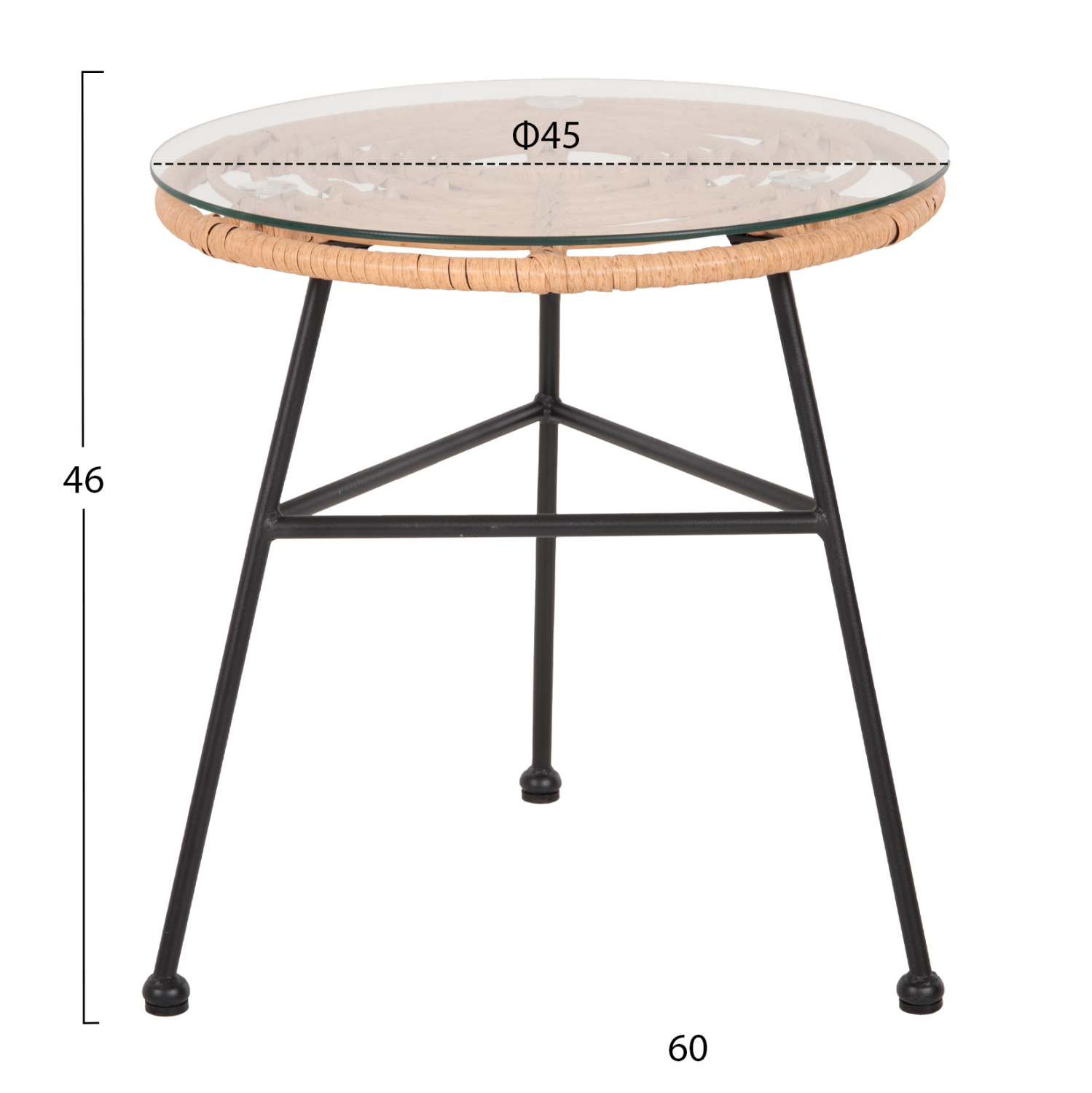 ΤΡΑΠΕΖΑΚΙ ΣΤΡΟΓΓΥΛΟ ΜΑΥΡΟ ΜΕΤΑΛΛΙΚΟ FB95459.11 ΜΠΕΖ WICKER-ΓΥΑΛΙ Φ45×46Υεκ