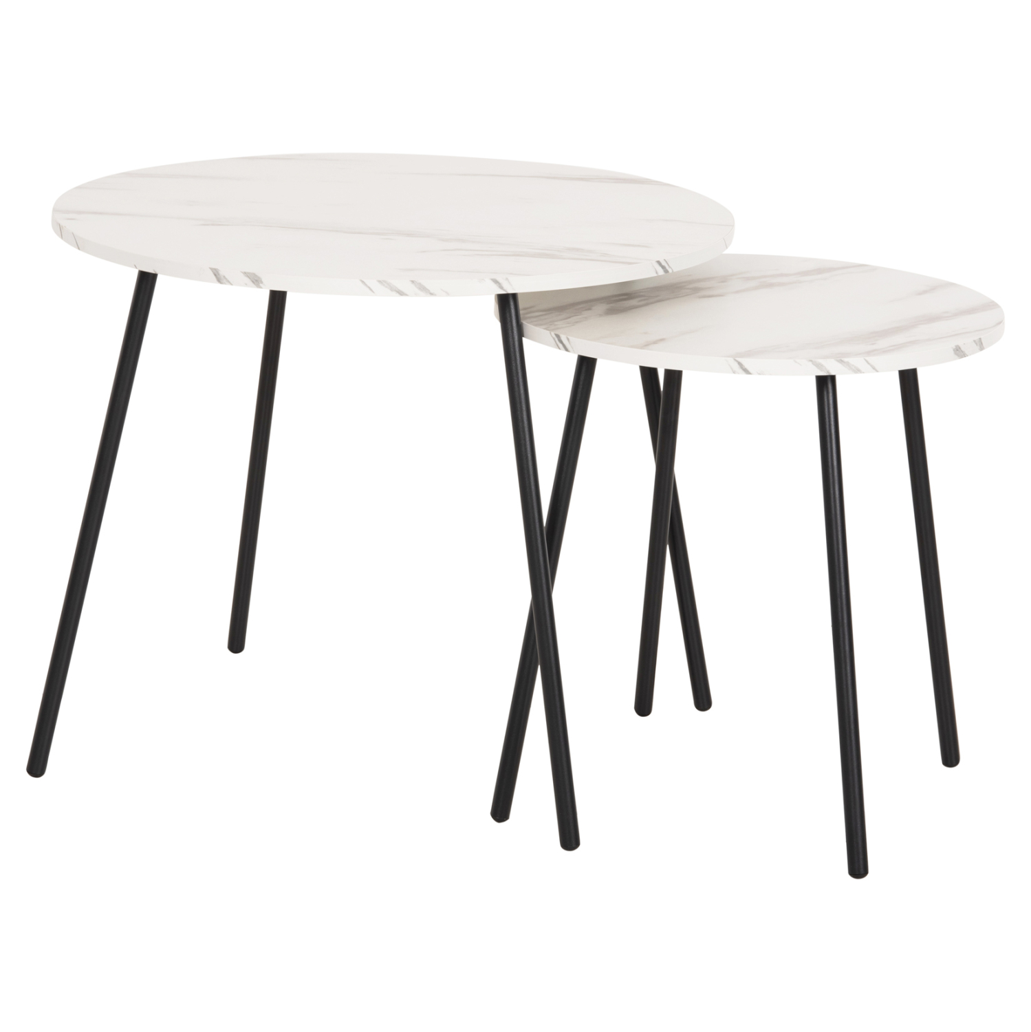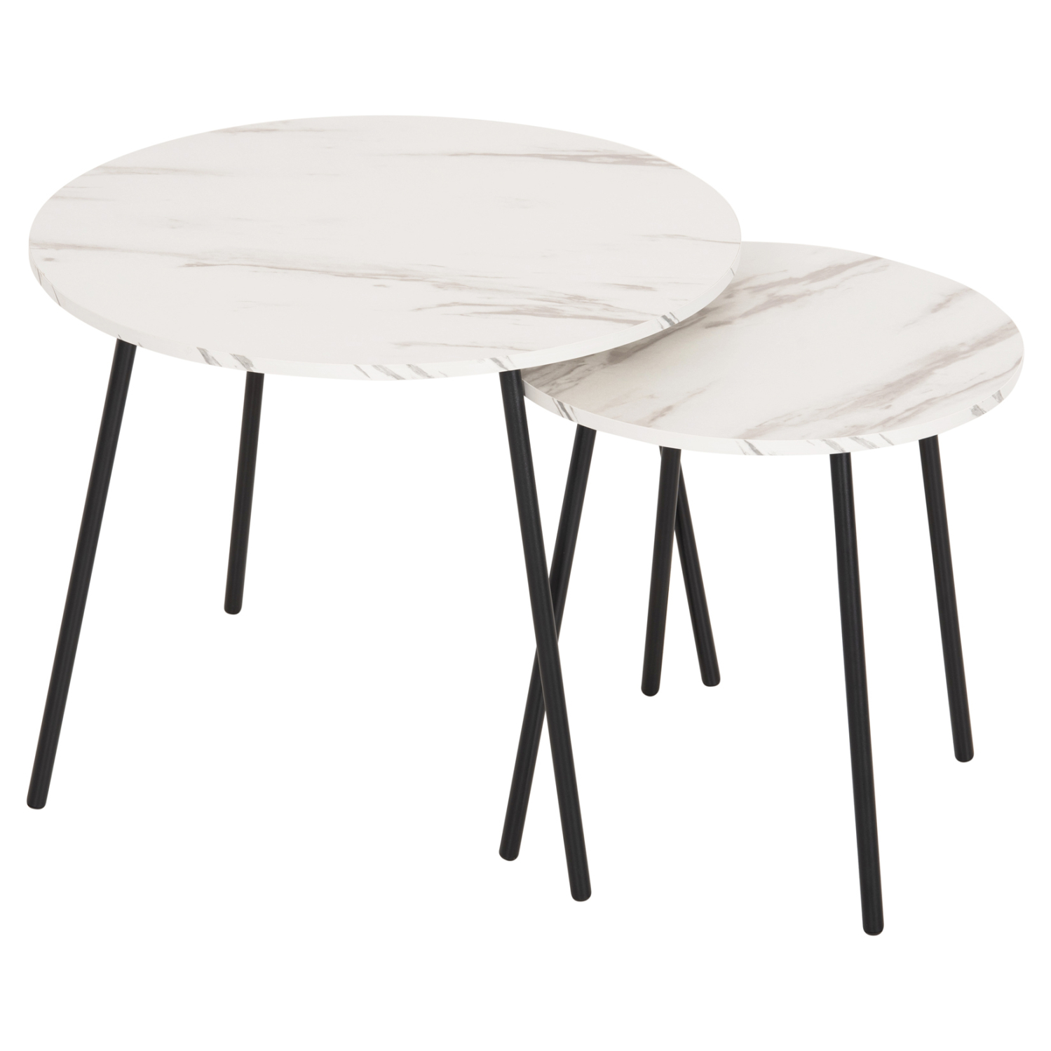 Τα τραπεζάκια ζιγκόν FB99878.12 θα σας ενθουσιάσουν με το στυλ και την πρακτικότητά τους. Μπορείτε να δημιουργήσετε πρωτότυπες διακοσμητικές συνθέσεις, δίνοντας νέα πνοή στον χώρο σας με αυτό το σετ. Πρόκειται για 2 στρογγυλά τραπέζια, ένα ψηλότερο κι ένα πιο κοντό που αποθηκεύεται κάτω από το ψηλό. Τα πόδια είναι μεταλλικά σε μαύρο χρώμα, ενώ οι επιφάνειές τους είναι σε χρώμα ΛΕΥΚΟ ΜΑΡΜΑΡΟ.