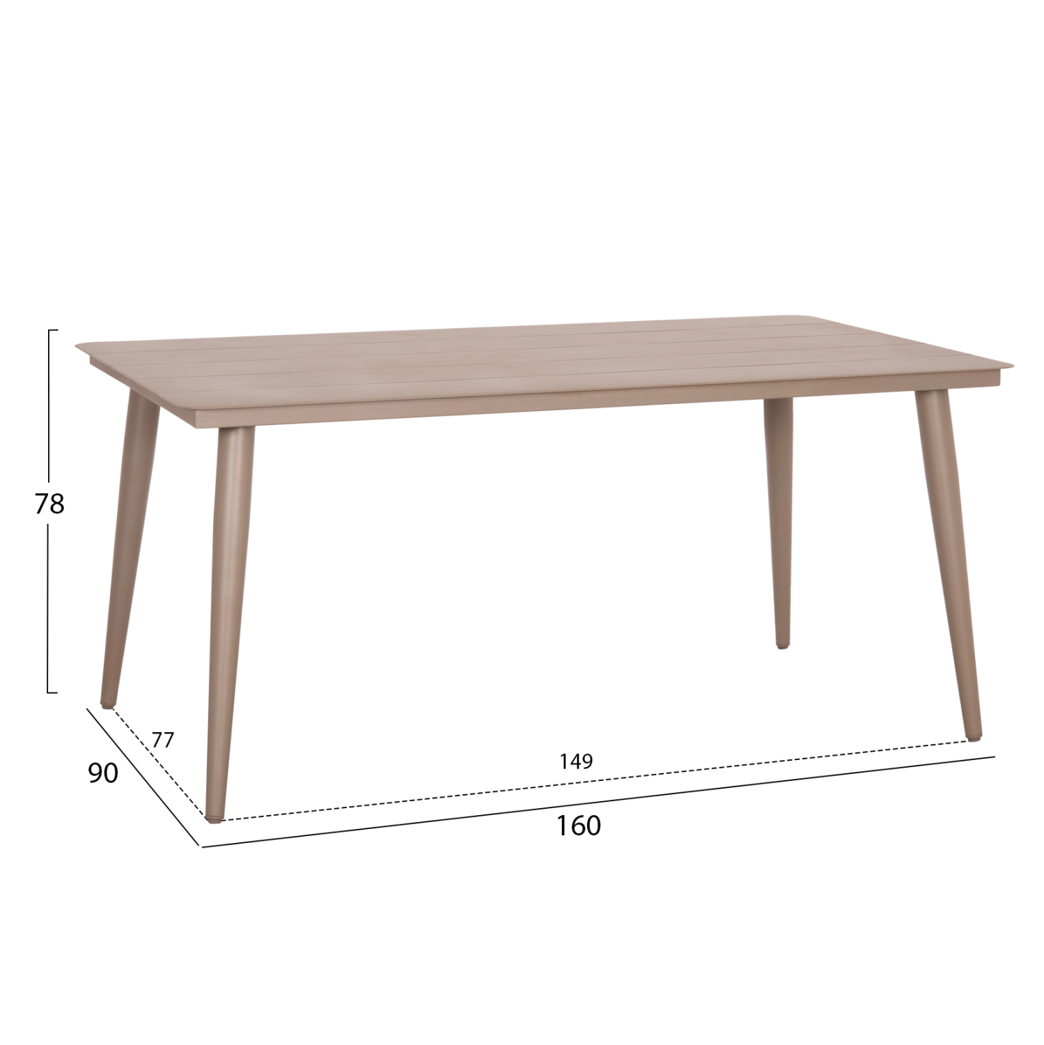 Το ορθογώνιο τραπέζι FB96291.04 είναι κατασκευασμένο εξολοκλήρου από φέτες αλουμινίου σε ΚΑΠΟΥΤΣΙΝΟ χρώμα με υφή wood grain. Στηρίζεται σε 4 καλαίσθητα πόδια. Το FB96291.04 πραγματικά θα το αγαπήσετε! Συνδυάστε τo με καρέκλες με την ίδια αισθητική και μεταμορφώστε τον εξωτερικό σας χώρο.