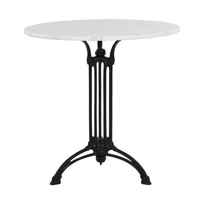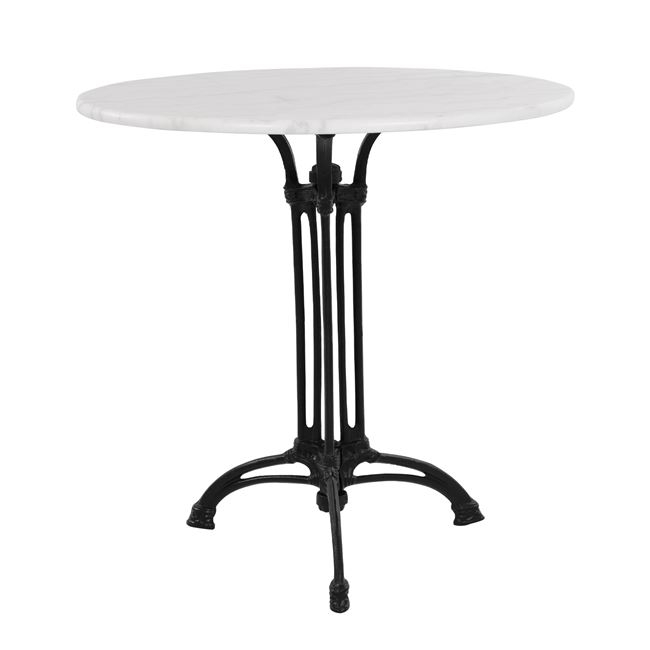 Το τραπέζι FB95609 είναι κατασκευασμένο από μάρμαρο σε λευκή απόχρωση ενώ η βάση του είναι κατασκευασμένη από μαντέμι σε μαύρη απόχρωση.